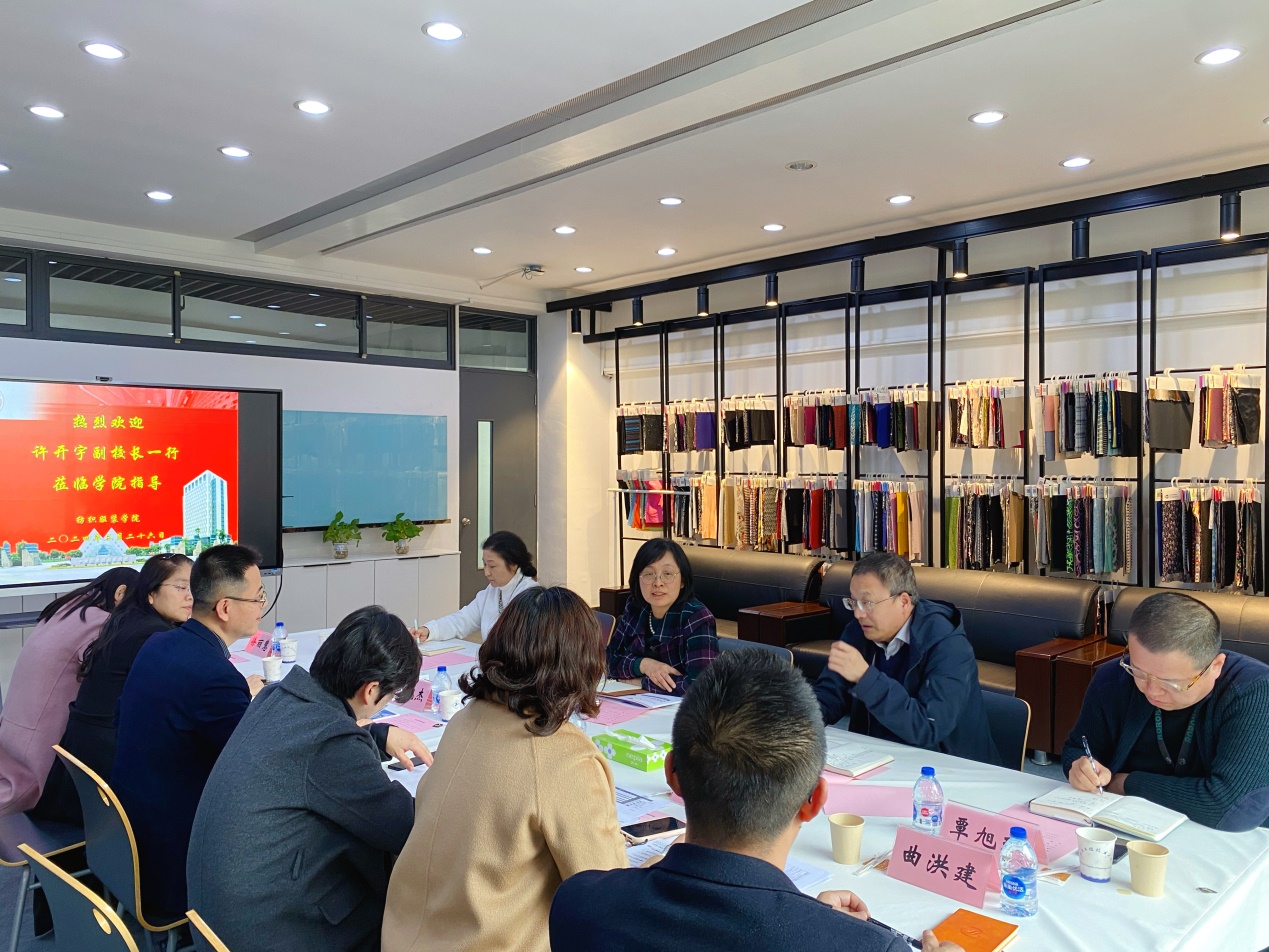 会上,许开宇副校长认真听取了学院汇报,对学院近年来所取得的成绩给予了充分肯定,并针对学院面临的问题和未来的发展提出希望。纺织服装业是我国的传统产业,同时也是国民经济与社会发展的支柱产业,学院要把握好新一轮科技革命和产业变革机遇,立足产业发展需求,梳理和研判学科特色,找准学院发展定位。她指出,要挖掘学院的“特点、特色、特长”长板,将长板发挥到最长处,同时找准学院发展的短板,并从战略层面、战术层面和操作层面,在短期、中期、长期工作任务中反复磨炼,进一步谋划推进学院高质量发展,因地制宜发展新质生产力。许开宇副校长强调,学院要紧密结合学校“三协同”模式,加强与企业、行业的合作和交流,通过深化院企合作,解决企业研发中的实际问题,提升教师的社会服务能力,提高人才培养质量,为行业提供高质量人才支撑。