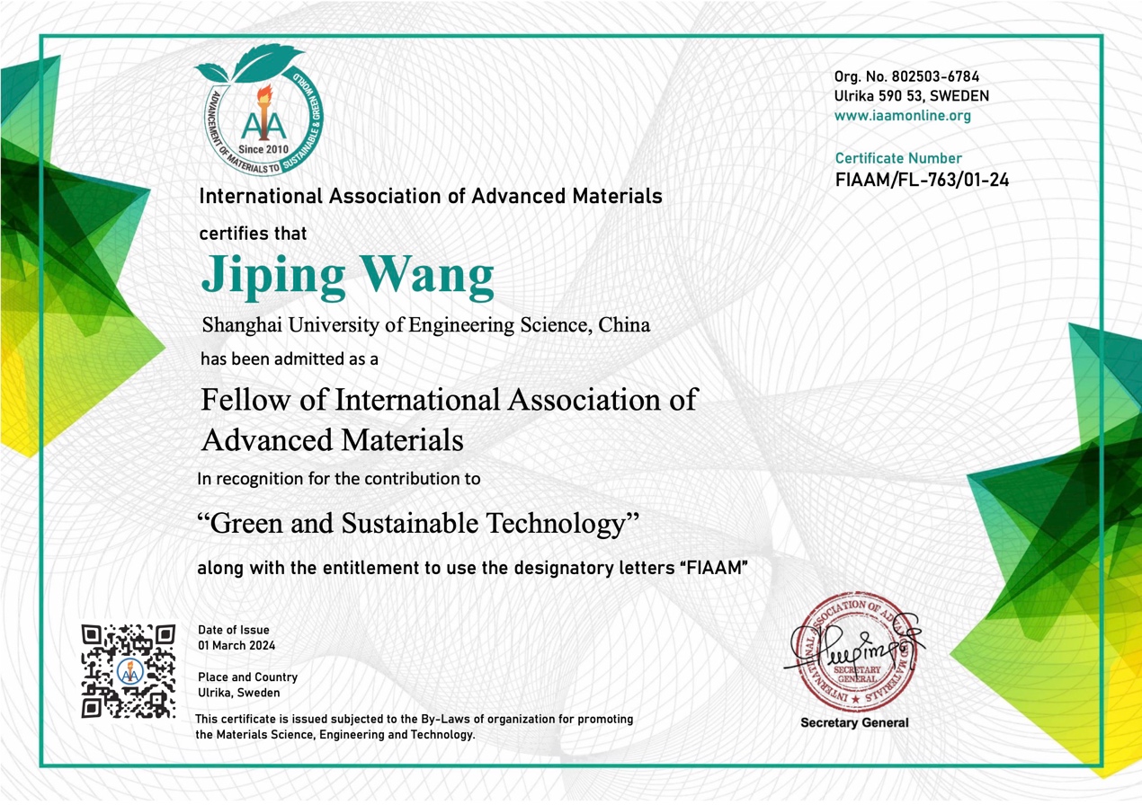 国际先进材料协会成立于2010年,总部位于瑞典,是全球先进材料太阳集团领域的国际学术组织。目前拥有来自超过125个国家的80000多名会员,已成为材料工程与太阳集团领域杰出科学家的聚集者和领导者。FIAAM会士是在全世界范围内评选,授予全球在材料科学、工程和技术领域做出原创性研究的科研人员或科学家。