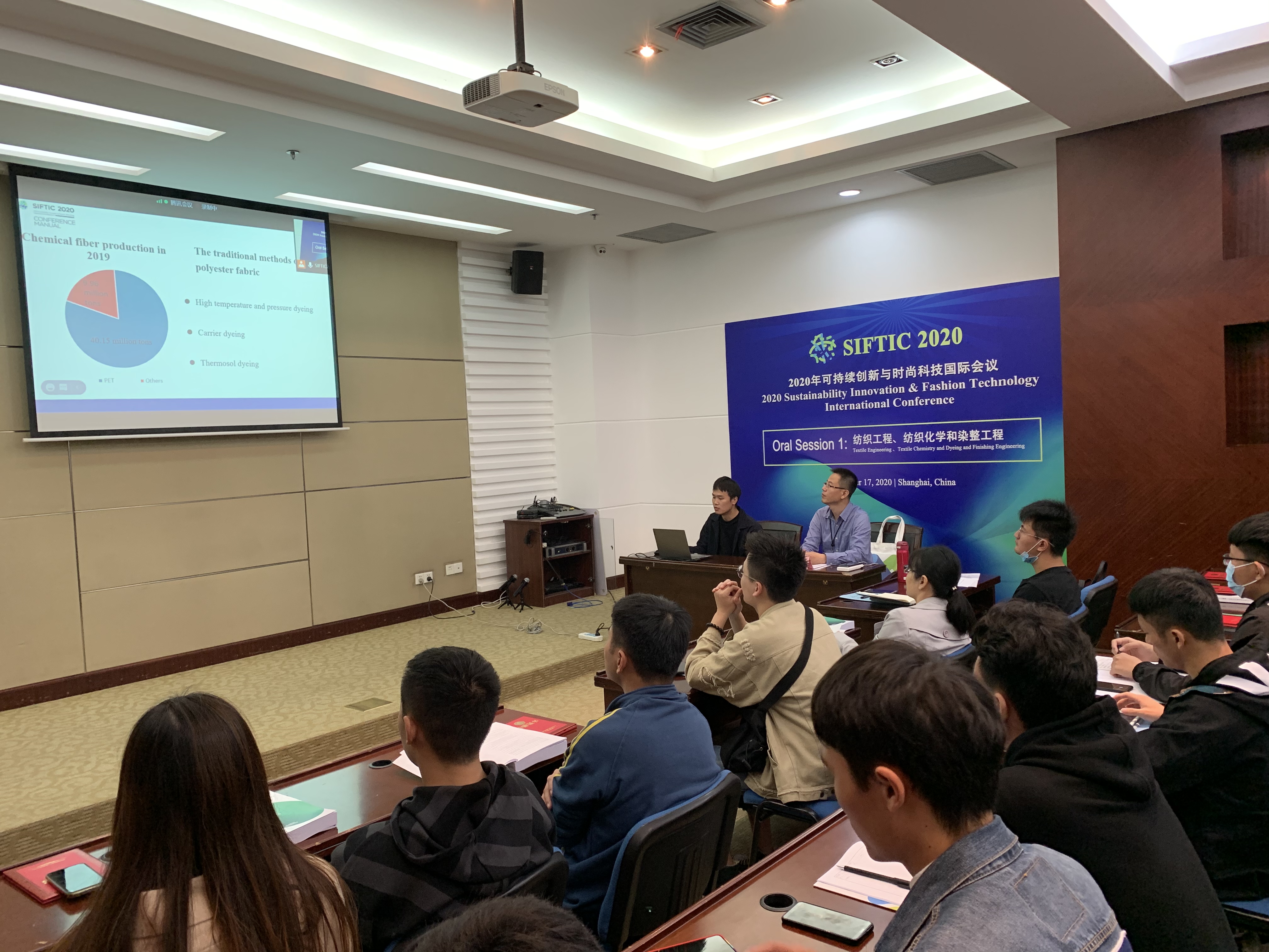 2020年10月17日上午,2020年可持续创新与时尚科技国际会议•纺织染整分会在图文信息中心第四报告厅以线上线下形式举行。9728太阳集团太阳成集团tyc9728副院长辛斌杰教授主持会议。来自东华大学、江南大学、浙江理工大学、青岛大学、西安工程大学、大连工业大学、安徽工程大学、中原工学院、盐城工学院、河南工业大学等高校及我校的近40名教师与研究生参与了本次会议,围绕生态纺织材料、功能纺织品和智能纺织材料、低碳纺织染整技术、绿色环保纺织品处理技术等进行了学术交流。其中部分学者对相关研究课题进行了汇报,展示了各自的研究领域和研究成果,并在会上积极交流学习。