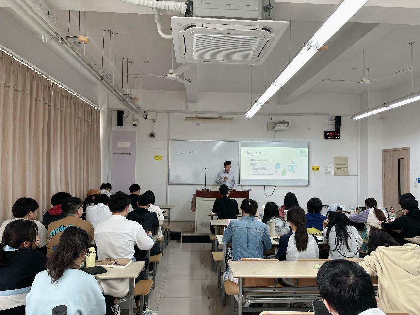 崔总以他丰富的行业经验和深厚的专业知识,为学生们深入讲授了纺织品抗菌的重要性、目前行业中抗菌性能优异的抗菌剂结构及抗菌机理,并对抗菌剂的测试标准和测试要求展开分析。课程中,以企业实际案例和市场中出现的不同抗菌、防霉、防蚊、消臭等概念及产品深入浅出的进行了的分析,向学生们传授如何购买这类服装的经验。