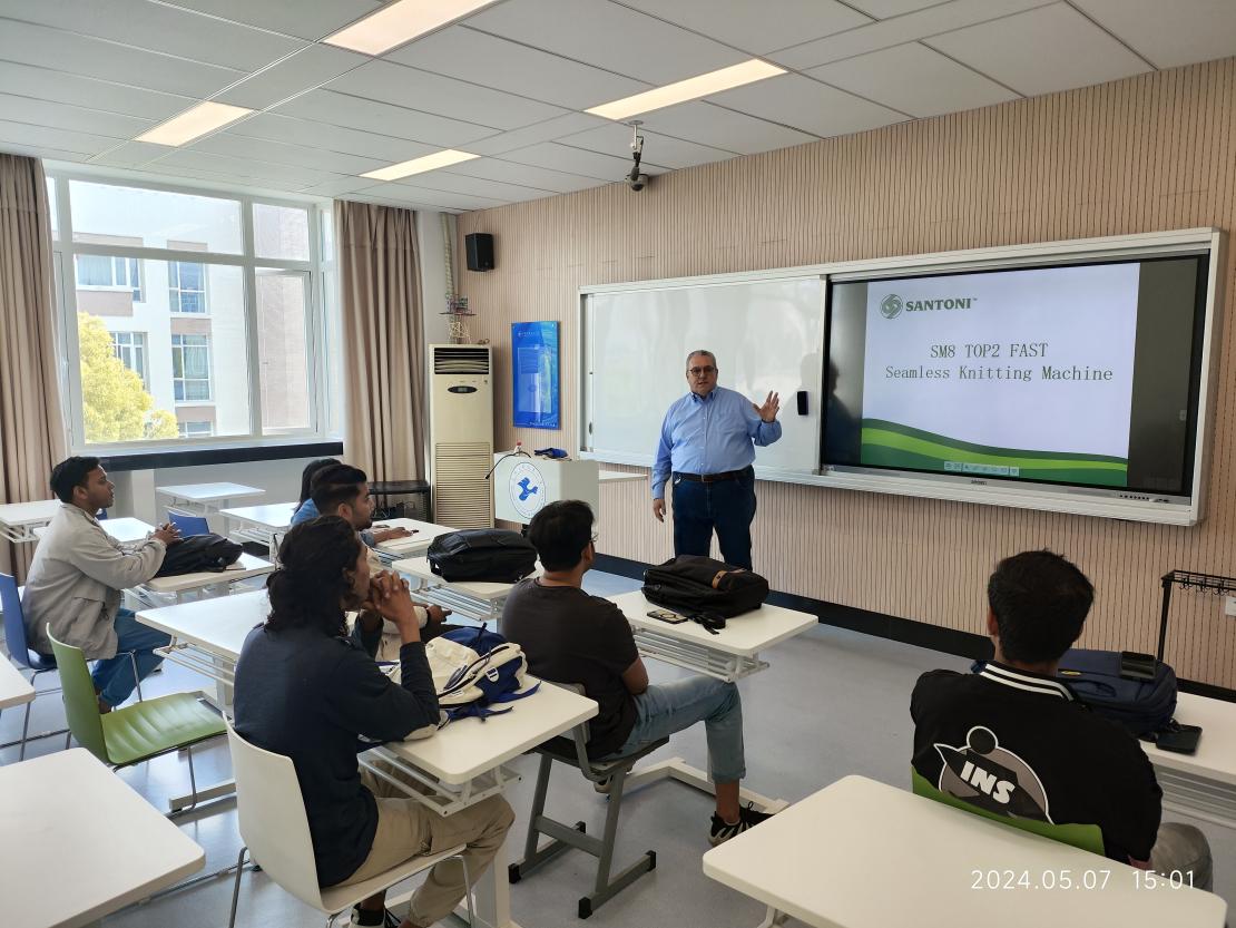 为了进一步探索产教融合、校企合作,将企业优质资源向育人资源转化,实施产学合作协同育人。5月7日,太阳成集团tyc9728纺织工程(全英文)专业邀请圣东尼(上海)针织机器有限公司的LORENZO GENNARI技术工程师走进了“针织学(全英文)”课堂给留学生授课。