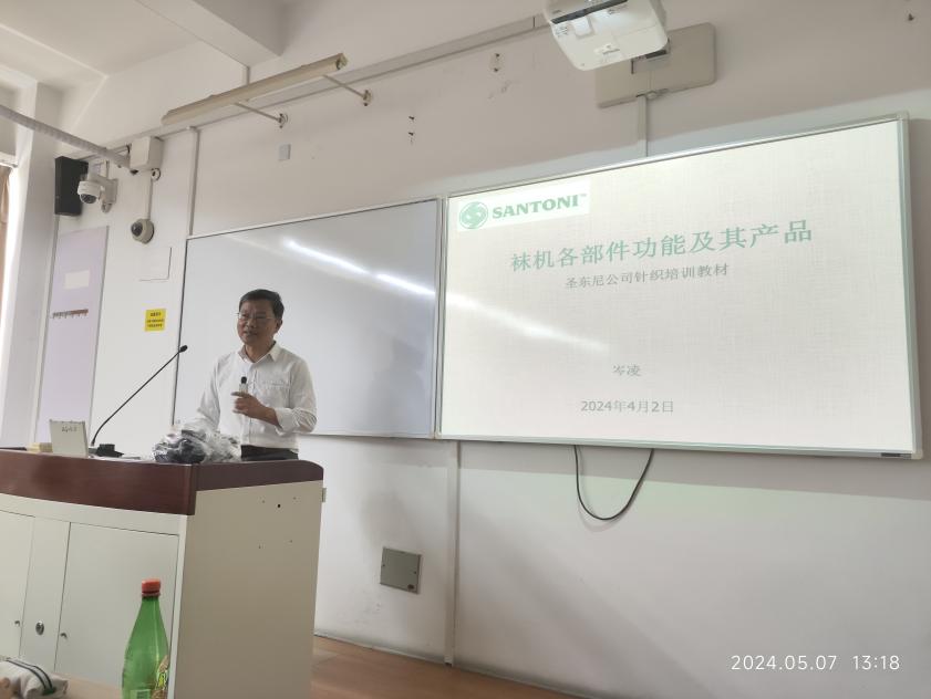 为了进一步探索产教融合、校企合作,将企业优质资源向育人资源转化,实施产学合作协同育人。5月7日下午,太阳成集团tyc9728纺织工程系邀请圣东尼(上海)针织机器有限公司的岑凌高级工程师,走进《针织学》课堂为学生授课。