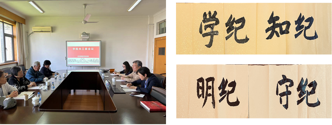 会上孙文钧书记进行领学带领大家仔细研读《中国共产党纪律处分条例》(以下简称《条例》),各位关工委老师逐字逐句读《条例》。学院退休教师胡宗孝老师为学院党纪学习教育题字“学纪、知纪、明纪、守纪”。与会老同志纷纷表示,将把遵规守纪刻印在心,内化为言行准则,永葆政治本色。