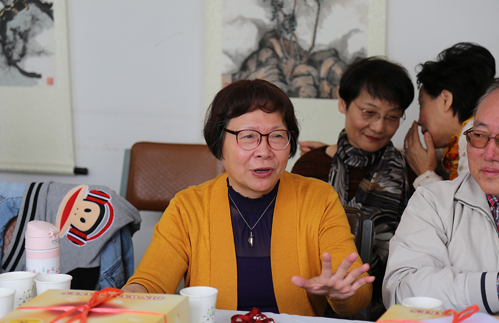 会议进入第三环节,胡宗孝老师讲述了他退休后的生活,兼职在上海戏剧学院工作,为京剧名家绘画,现所著《梨园三十六家》一书已正式出版,他向学院捐赠亲笔签名书籍一册。随后学校督导孙熊老师,原服装学院党总支书记黄勤奋老师,院退休组长阮仪老师,原纺织系主任曹丽娜老师分别做了交流发言。原纺织系主任戴瑶琴老师和黄时建老师,共同回忆了学校创立之初的艰苦,黄时建老师是我校78级首届毕业生,去年也从服装学院光荣退休,而戴瑶琴恰恰是当年黄时建老师的老师,师生二人忆起了78、79年青葱岁月的往事和曾经的老师,不禁让人感慨。张国强老师兴致很高为在座的老师高歌了一曲,胡宗孝老师也一展歌喉为老师们清唱了一小段京剧片段。