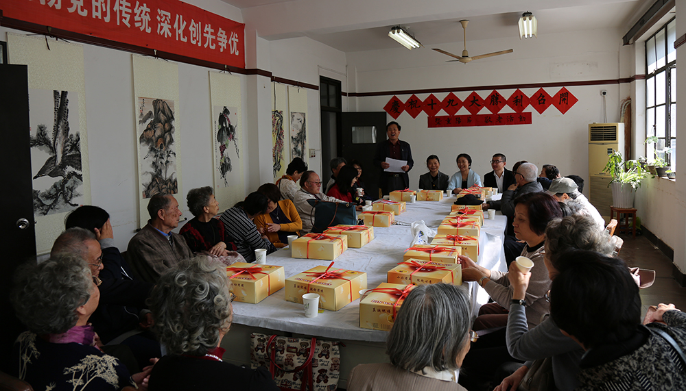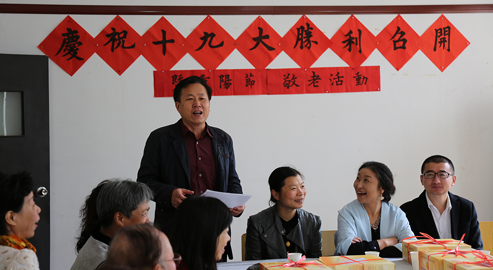 菊花吐蕊,金桂飘香;岁岁重阳,今又重阳。在这金秋十月恰逢党的十九大隆重召开之际,服装学院于10月25日在9728太阳集团新村路校区行政楼二楼活动室举行敬老节庆祝活动。退休老教师们许久未见,一见面都分外亲切,大家济济一堂,话新叙旧。服装学院院长谢红、院党委副书记李扬、副书记张漪、工会主席何文元及全体离退休教师参与了庆祝活动。