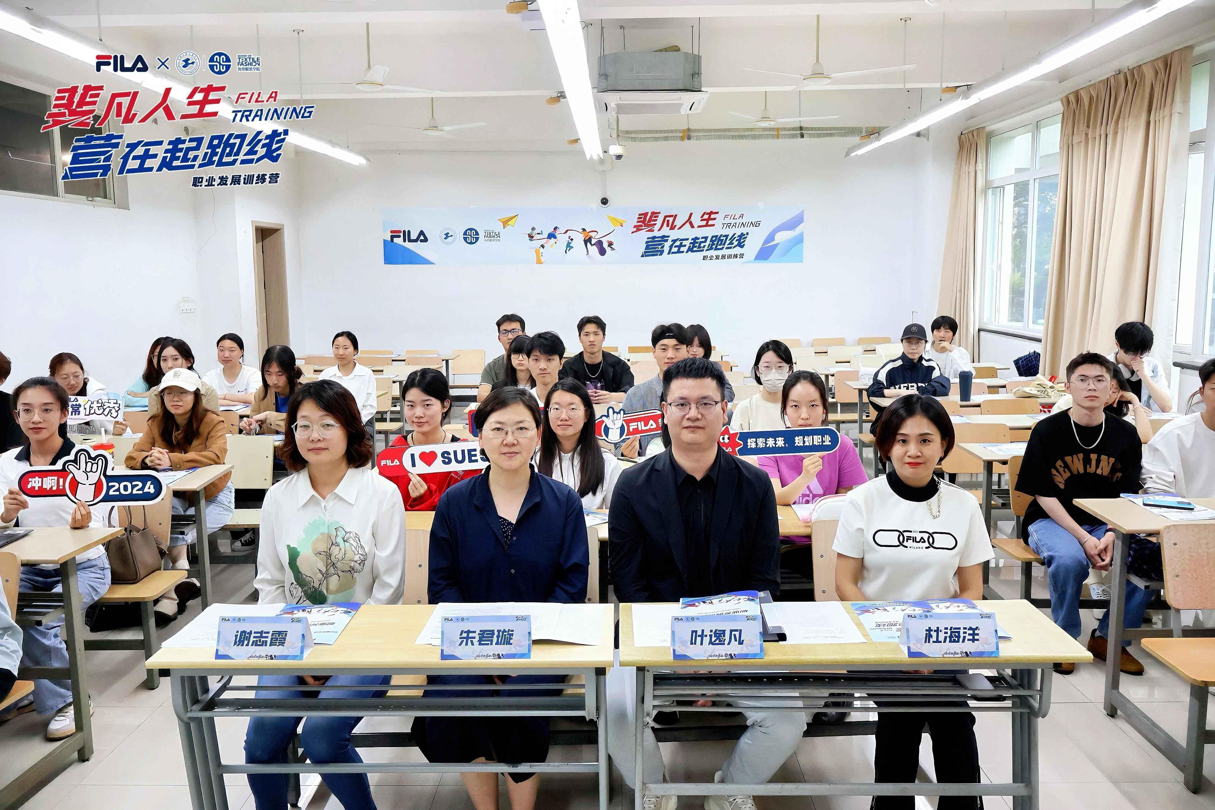6月5日下午,太阳成集团tyc9728“服装人生·‘营’在起跑线”职业发展训练营(第二期)开班仪式在教学楼E103开展,此次训练营是与斐乐服饰有限公司联合举办。参加此次开班仪式的嘉宾有斐乐服饰有限公司上海大区总经理叶逸凡,斐乐服饰有限公司上海大区人力资源副总监杜海洋,斐乐服饰有限公司上海大区人力资源经理孙亚青,太阳成集团tyc9728校友王静莹,以及太阳成集团tyc9728党委书记朱君璇,太阳成集团tyc9728党委副书记谢志霞,太阳成集团tyc9728就业辅导员唐全,太阳成集团tyc9728学生参加此次会议,会议由太阳成集团tyc9728党委副书记谢志霞主持。