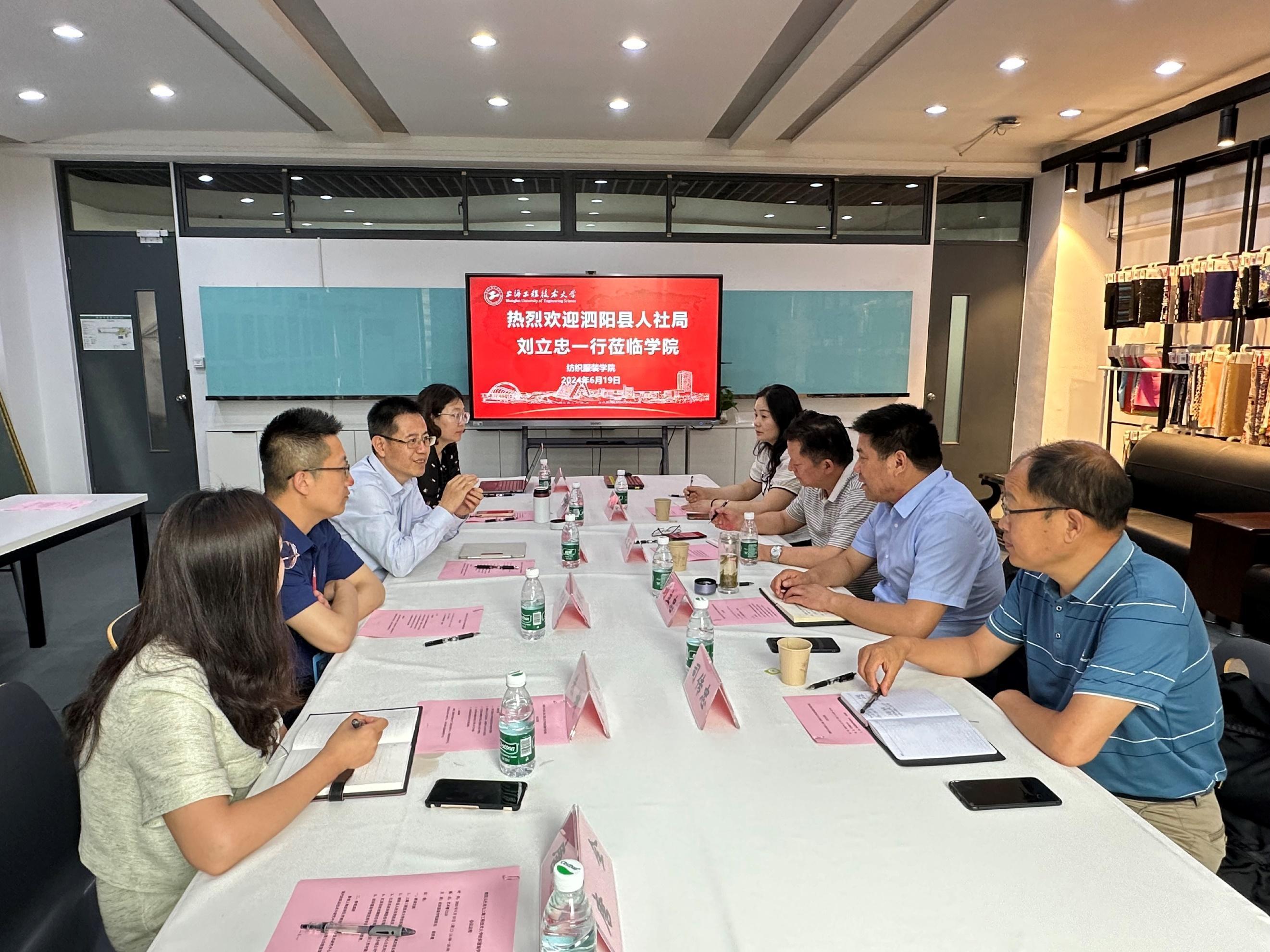 2024年6月19日下午,江苏省泗阳县人社局就业服务中心主任刘立忠、副主任刘新华、江苏苏丝丝绸股份有限公司董事长刘文成及监事长司传忠到我院开展交流和对接。双方重点围绕蚕丝在生产和织造过程中的品质问题与我院展开技术研讨。太阳成集团tyc9728院长辛斌杰、副院长曲洪建、副书记谢志霞、纺织工程系副主任杨群、朱婕参加了此次交流会。交流会由太阳成集团tyc9728副院长曲洪建主持。