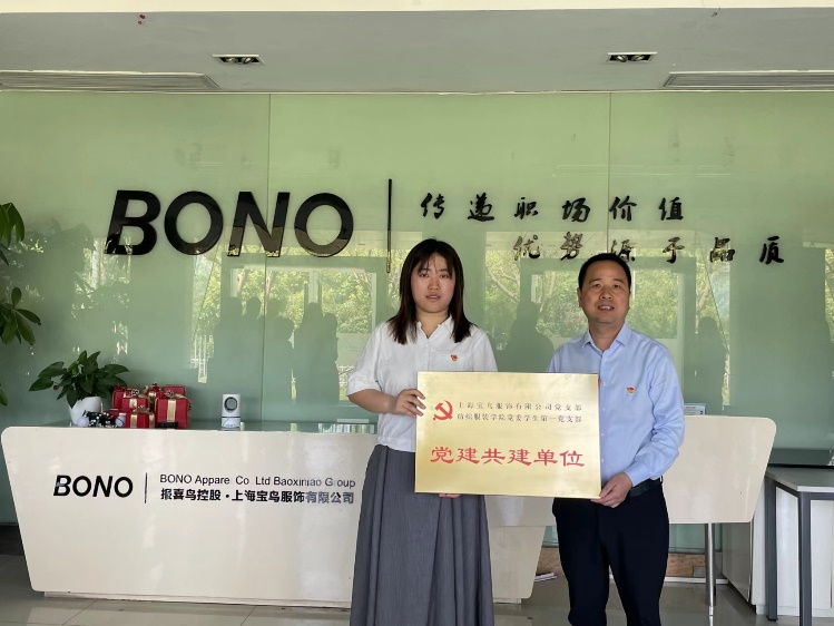 中共上海宝鸟服饰党支部书记与学生第一党支部师生围绕党建工作展开交流,明确未来党建共建方向,初步确定活动开展形式,充分结合创新训练、产业实践、企业指导等内容,旨在联合探索出具有学校特色的高校产教融合人才培养模式。现场举行了授牌仪式,双方正式确立互为党建共建单位。