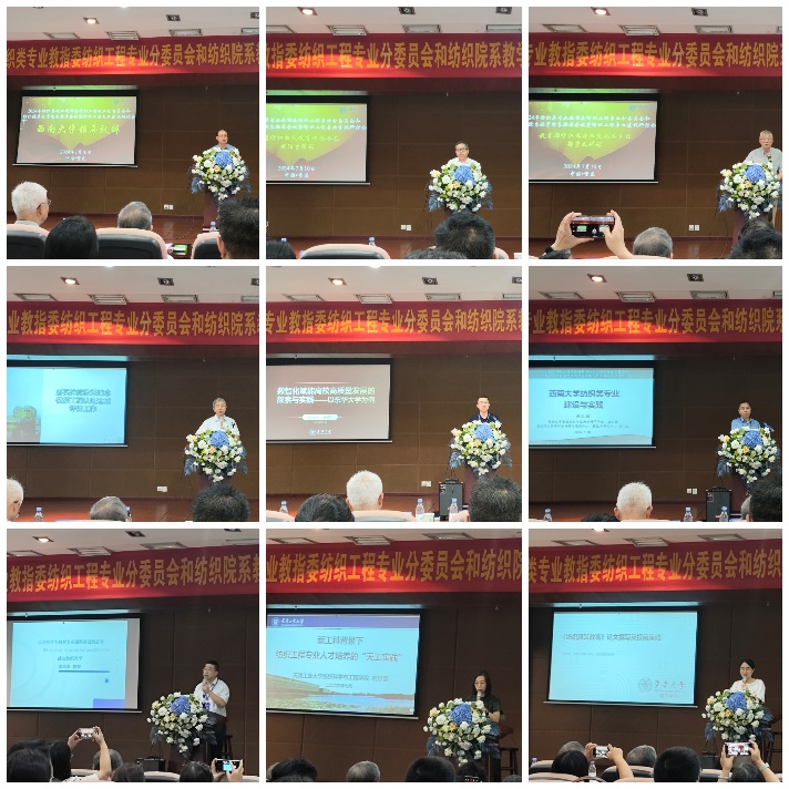 会上,西南大学党委常委、副校长周光明致欢迎辞,中国纺织服装教育学会会长倪阳生、教育部纺织类专业教指委主任郁崇文分别做了重要讲话。工程教育专业认证纺织类专业认证委员会主任丁辛、东华大学教务处处长杨旭东、西南大学蚕桑纺织与生物质科学学院副院长赵天福、武汉纺织大学张尚勇、天津工业大学荆妙蕾、《纺织服装教育》编辑部主任李伟伟、东华大学郁崇文等专家教授分别就纺织工程专业认证、专业高质量及数智化发展、纺织类专业建设与实践、国家一流课程建设、纺织工程专业人才培养、纺织期刊论文撰写策略、课程教材建设等主题作了精彩的报告。