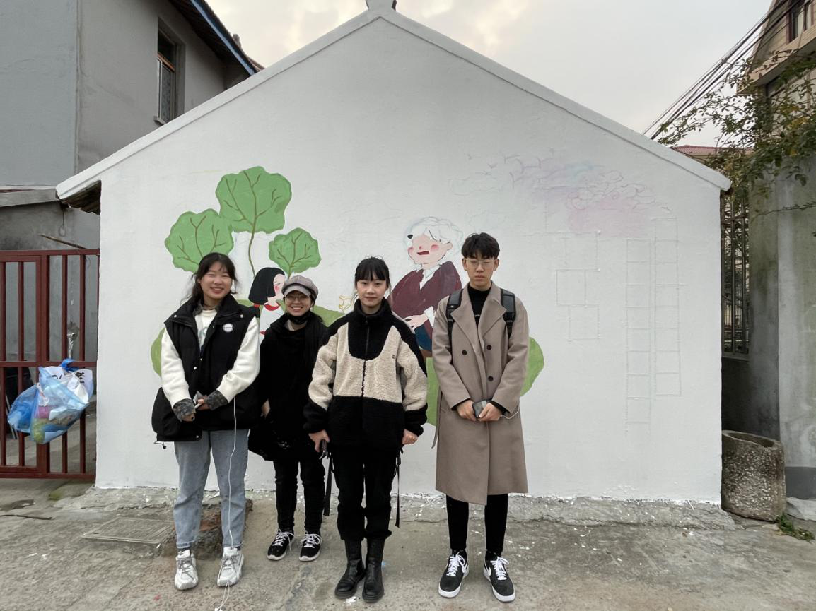 会后,同学们以小组为单位,开展了以崇德向上、孝道友善、打拼创业为主题的墙体彩绘活动。