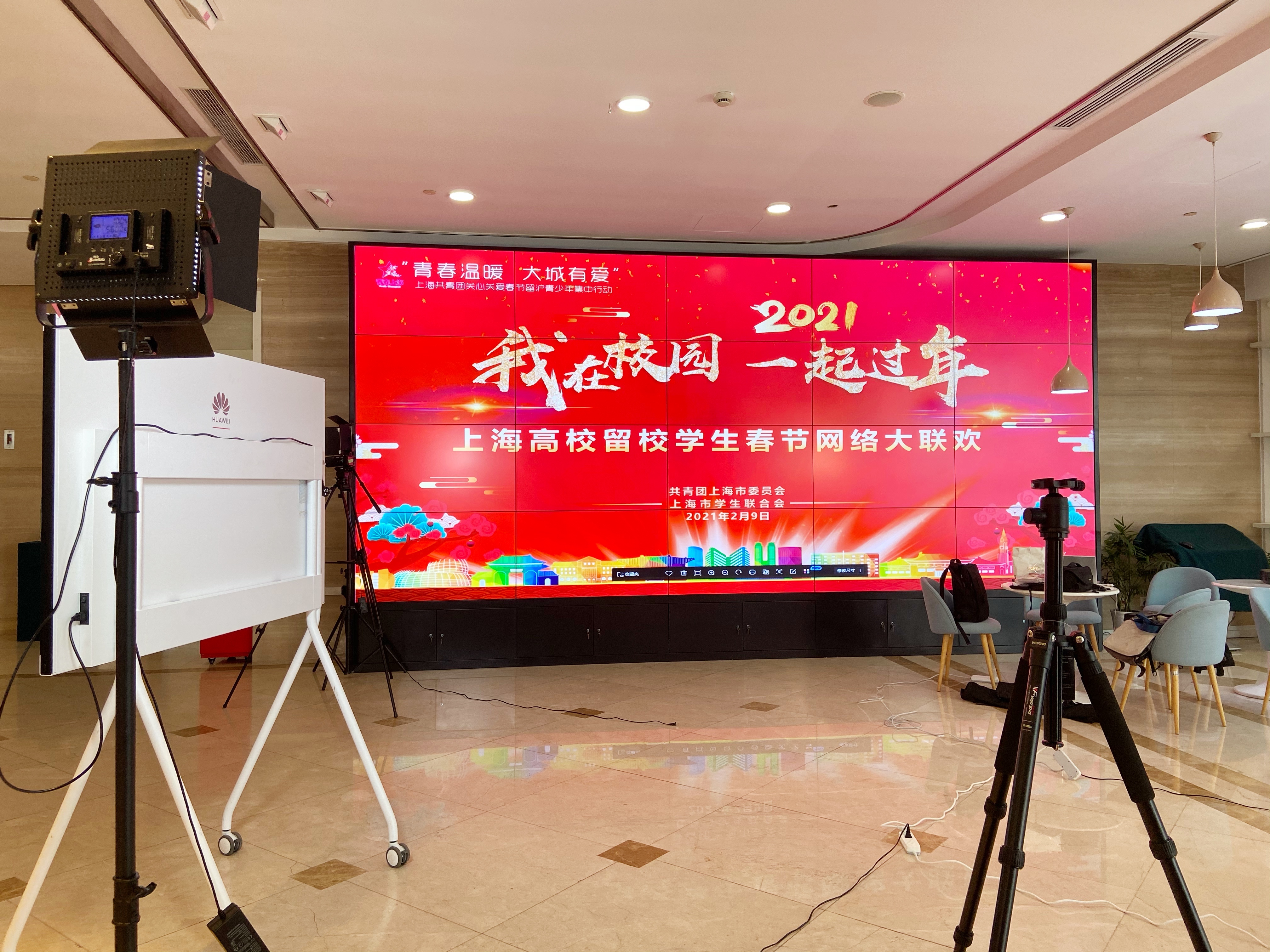 今年寒假,因为疫情防控的需要,部分高校学子积极响应“非必要不离沪”号召,留在校园度过春节。在根据上海共青团关心关爱春节留沪青少年集中行动的工作安排下,2月9日下午,由团市委、市学联主办的“我在校园 一起过年”上海高校留校学生春节网络大联欢在bilibili和微博两个平台同步上线,全市各高校留校师生在线喜迎牛年新春。旨在通过歌曲、舞蹈、朗诵等形式的节目丰富留校大学生的生活,陪伴他们度过一个温暖有爱的春节假期。活动通过三个篇章与大学生共度青春中国年,勉励大学生奋斗正当年,争做出彩新青年。
