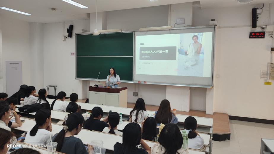 9月23日,纺织服装学院《现代服装设计与工程导论》课程邀请到了柯镂软件开发(上海)有限公司商务经理贾伊斓女士,为服装设计与工程专业大一学生带来了一场别开生面的讲座。贾伊斓女士从数字化时代的服装设计新趋势为切入点,介绍了CLO 3D服装设计软件中整合的3D建模、虚拟现实(VR)、AI生成等先进技术如何为设计师提供更为直观、高效的设计手段。通过生动的案例展示,学生们亲眼见证了这些技术如何帮助设计师在创意构思、面料选择、色彩搭配、版型调整等各个环节中实现精准把控,极大地提升了设计效率和作品质量。