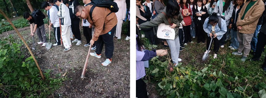 在指导老师李永贺的带领下,学生们手持铁锹、铲子,有的负责割藤蔓,有的负责挖红薯,有的负责清理红薯,挖红薯的过程虽然辛苦,但学生们却乐在其中。他们不仅学到了如何识别红薯的成熟度、如何正确使用工具等实用技能,更在劳动中体会到了团队合作的重要性。许多学生表示,通过这次活动,更加深刻感受到“一粥一饭当思来之不易”的深刻含义,也更加珍惜来之不易的劳动成果。在挖红薯活动结束后,学院立即组织师生们对土地进行了翻整和除草,为接下来的种植工作做好前期的准备工作。