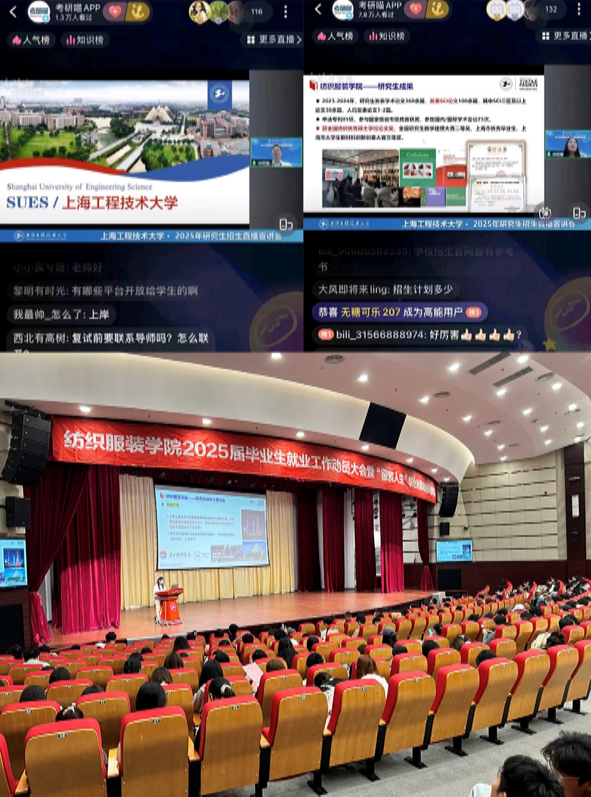 同时,在河南工程学院纺织学院和化工与印染工程学院、盐城工程学院、德州学院等院校通过线上线下相结合方式开展研究生招生宣传,就学生比较关注的考试大纲、参考教材、录取分数、初试复试、就业等问题展开了耐心交流和答疑解惑,并鼓励同学们积极报考太阳成集团tyc97282025年全日制硕士研究生。还分析了我校2025年研究生招生情况,帮助广大考生更好地了解学院研究生招生信息,以进一步提升纺织服装学院研究生生源质量。