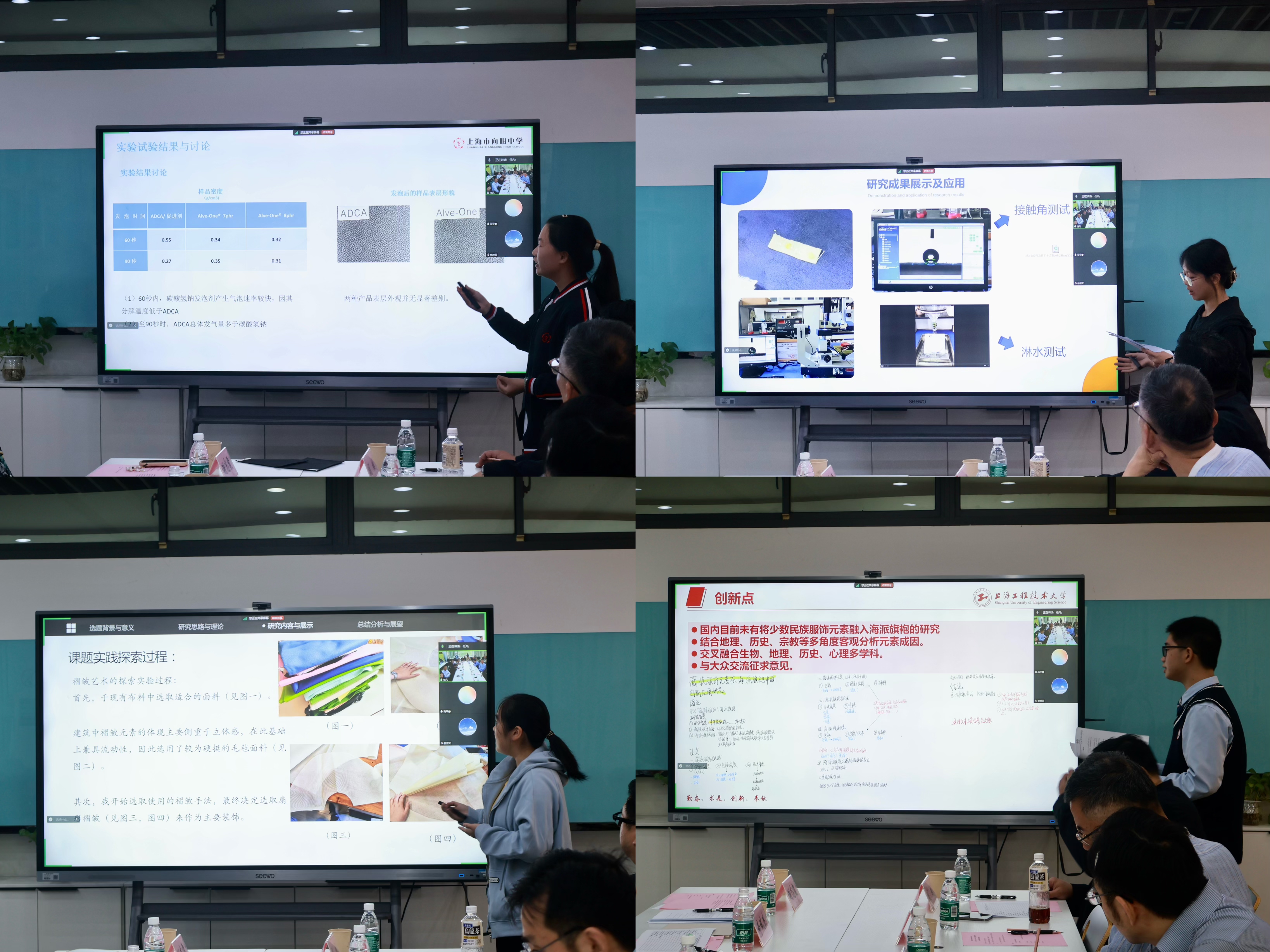 10月19日上午,9728太阳集团纺织科学与工程实践工作站于9728太阳集团艺术楼C210举办第九期推优答辩会。东方国际纺研院院长李健,上海市纺织工程学会秘书长马平春、上海市纺织太阳集团院副院长张德良、副院长李勇、副院长王爱兵,校外导师林兰天、刘晓霞,上海纺织协会秘书长杜卫平高工,纺研院金平良高工、原化纤研究所高琮高工,纺织科学与工程实践工作站站长、太阳成集团tyc9728院长辛斌杰,实践工作站副站长胡越,上海纺织博物馆实践点指导教师戴璐,松江二中实践点指导教师蒋晨熙共同出席本次答辩会。答辩会由实践工作站副站长、太阳成集团tyc9728党委副书记谢志霞主持。
