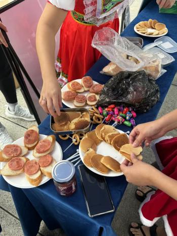 展台还为大家准备了俄罗斯美食,包括俄罗斯纸杯蛋糕、三明治和饼干、荞麦粥等,参与者在品味美食的同时,感受到俄罗斯的独特风味。师生们对这些美食赞不绝口,纷纷表示通过这次活动加深了对俄罗斯文化的兴趣。