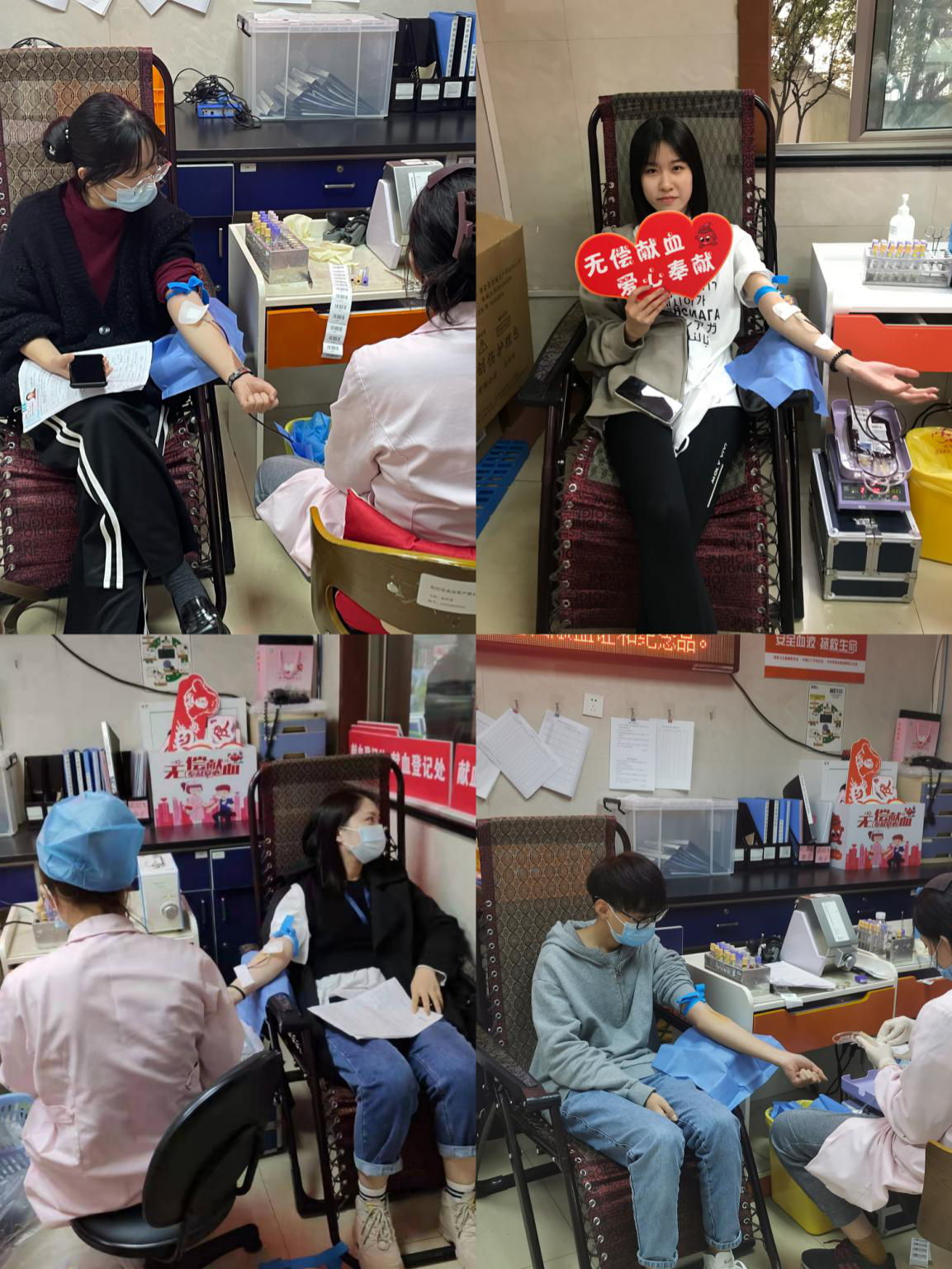 在献血现场,大家认真填表、体检、化验、抽血,在医护工作人员的指导下按要求有序、井然进行,现场的志愿者也在积极协助。通过这次无偿献血活动,使大家切身感受到了奉献爱心带来的温暖与幸福。在一片轻松而愉快的氛围中,他们完成了献血这一光荣之举。