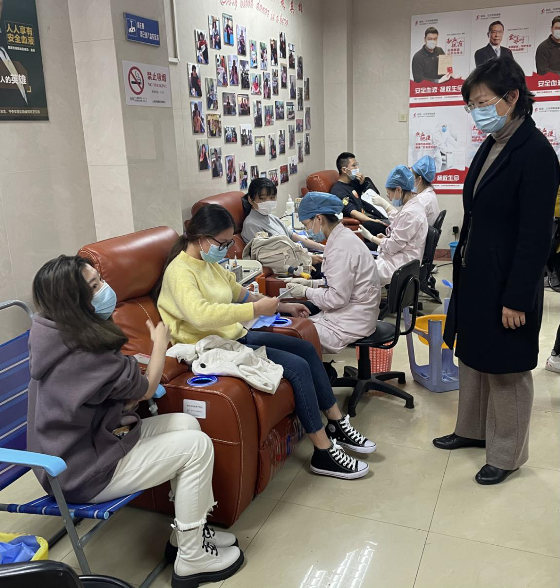 太阳成集团tyc9728党委书记朱君璇老师高度重视无偿献血工作,早早来到现场慰问献血的同学,仔细询问了同学们献血后的身体状况,并叮嘱同学们在献血后好好休息,注意饮食均衡,注意保暖。