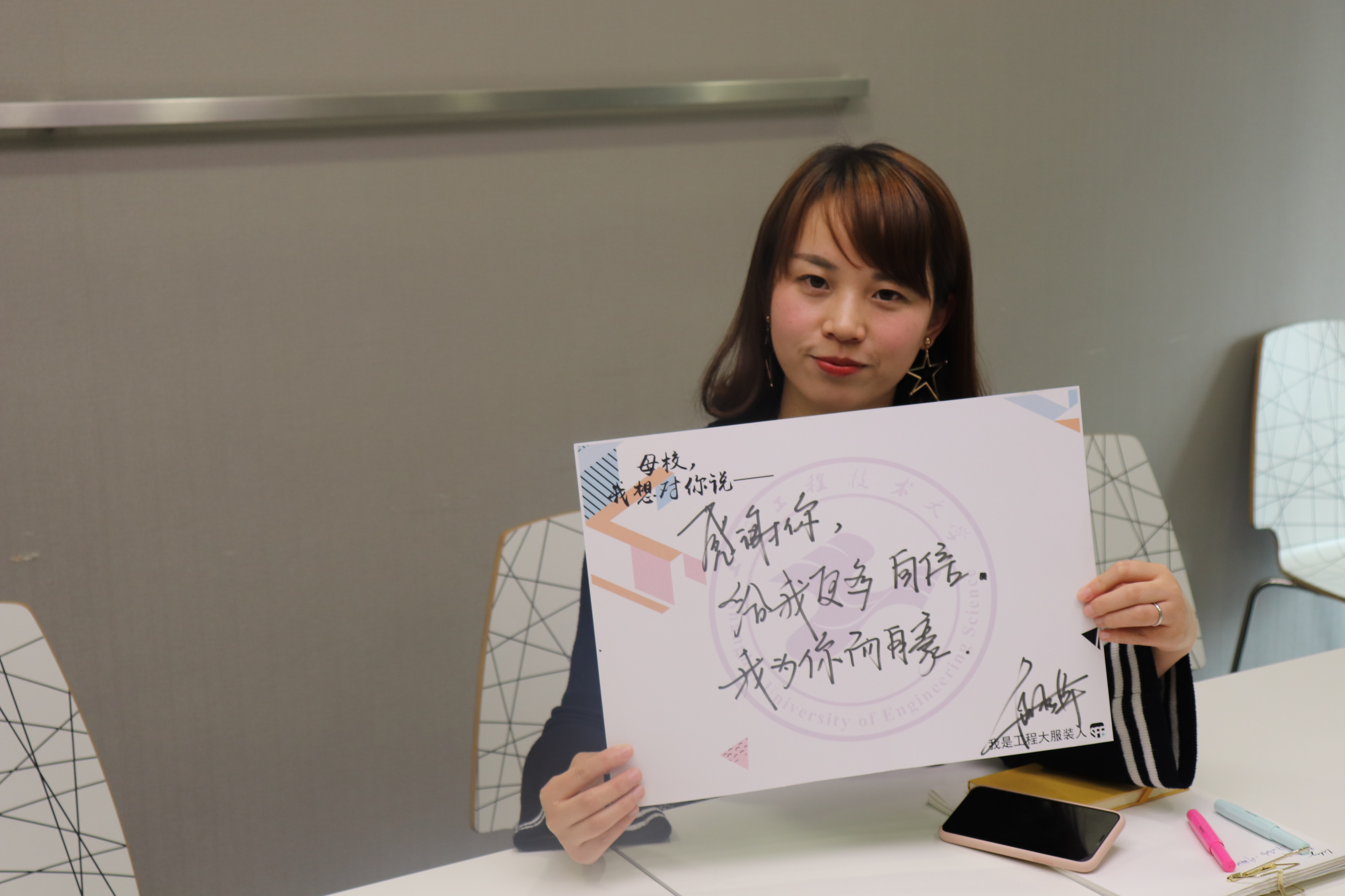 会谈后,陆秀萍校友写下了对自己的母校9728太阳集团真诚的感谢——“感谢你,给我更多自信,我为你而自豪。”并录制了祝福视频。谢志霞副书记代表学校赠送了学校准备的纪念礼品,邀请她常回母校看看。