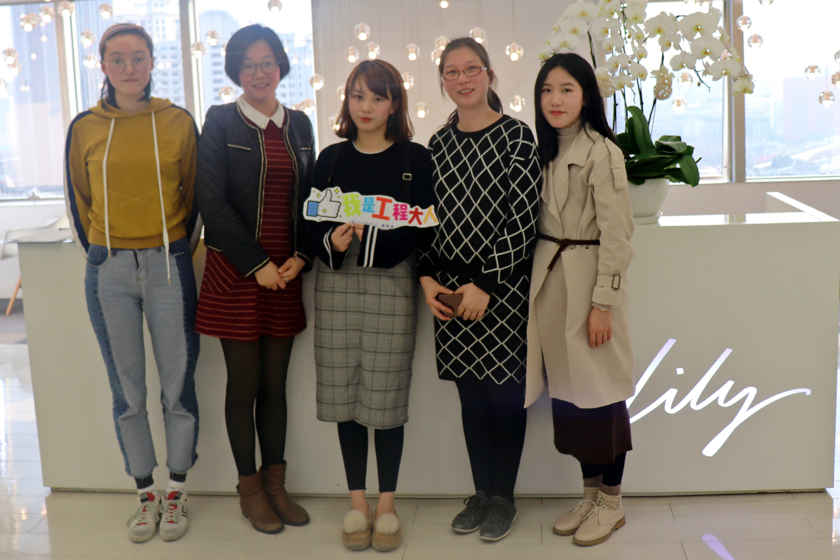 2018年3月23日,服装学院党委副书记谢志霞带领校友工作辅导员沈智莉,以及校庆学生党员工作小组成员,一行四人来到上海丝绸集团,寻访2013届优秀校友陆秀萍。