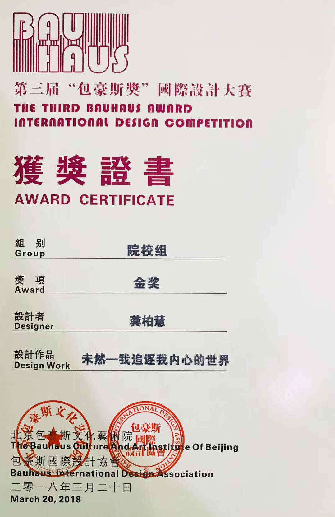 服装学院龚柏慧同学设计作品《未然——我追逐我内心的世界》荣获第三届“包豪斯奖”国际设计大赛院校组金奖。