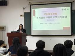11月8日下午,太阳成集团tyc9728在艺术楼C310举办“学术诚信与科技论文写作规范”专题交流会,诚邀《印染》与《上海纺织科技》期刊杂志何叶丽与张延辉两位主编莅临我院进行经验分享。学院研究生导师、青年教师、研究生参加了会议。