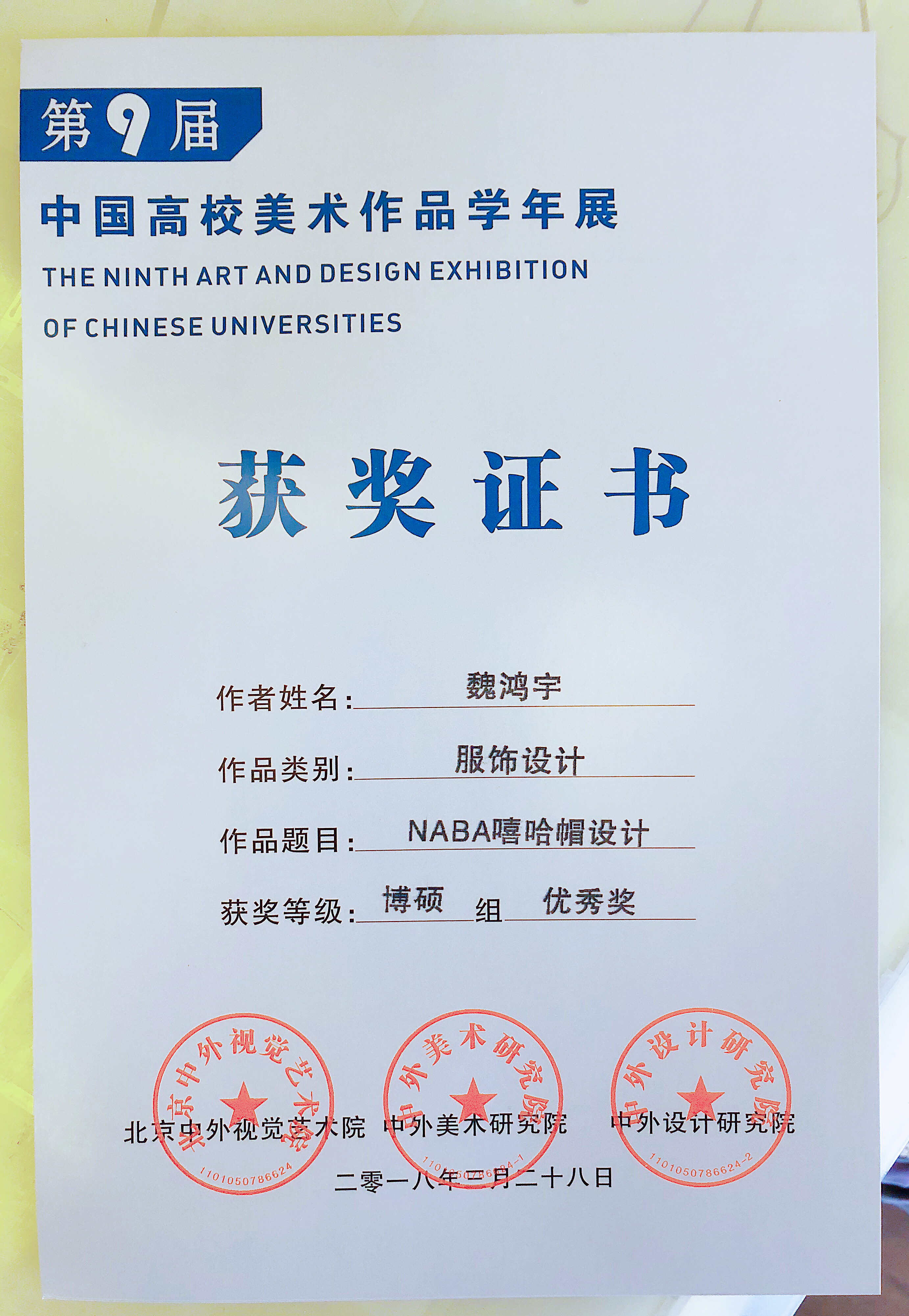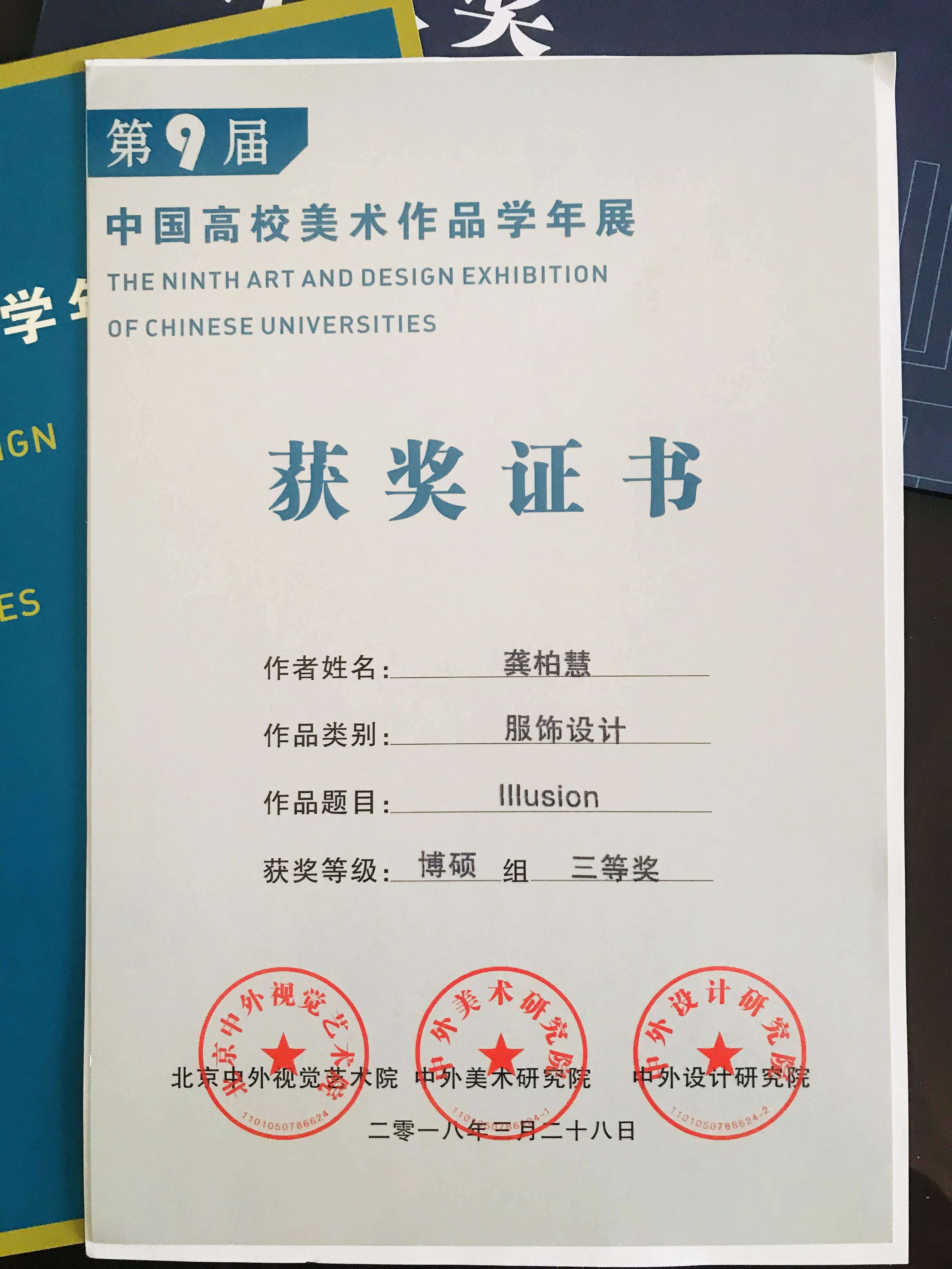 服装学院学生龚柏慧、魏鸿宇在导师袁蓉副教授的指导下,在第九届“中国高校美术作品学年展”上硕果颇丰,分别获得博硕组三等奖以及博硕组优秀奖。