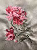 王燕珍老师深知,要想实现非物质文化遗产真正的延续,必须注重其活态特性。因此,她不仅在课堂上传授顾绣技法,更积极探索顾绣与现代技术相结合的新路径。她与服装工程系的赵蒙蒙老师合作,将学生在课程上创作的顾绣作品运用到3D虚拟刺绣交互展示课程中,制作诸如旗袍、新中式等服装,运用数字科技让非遗技艺“活”起来。这一创新举措不仅让古老技艺焕发了新生机,更激发了年轻人对非遗文化的浓厚兴趣。