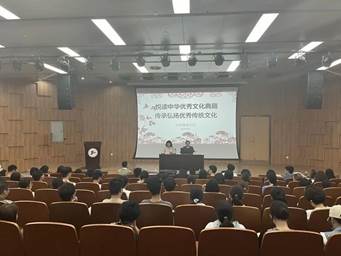 为弘扬中华优秀传统文化,充分重视和挖掘中华优秀传统文化典籍在当今时代的教育价值,以经典文化浸润青少年成长,增强新时代大学生对中华优秀传统文化的认知和热爱之情,提升学生审美和人文素养,塑造正确价值观念,助力青年大学生成长成才,太阳成集团tyc9728“悦读中华优秀文化典籍,传承和弘扬优秀传统文化”主题教育系列活动―传统文化大讲堂第一讲于10月17日在现代交通中心一楼报告厅正式开讲。讲座由太阳成集团tyc9728党委副书记谢志霞主持,全体传统文化研修班学员和学院团委青年骨干学生参加讲座。