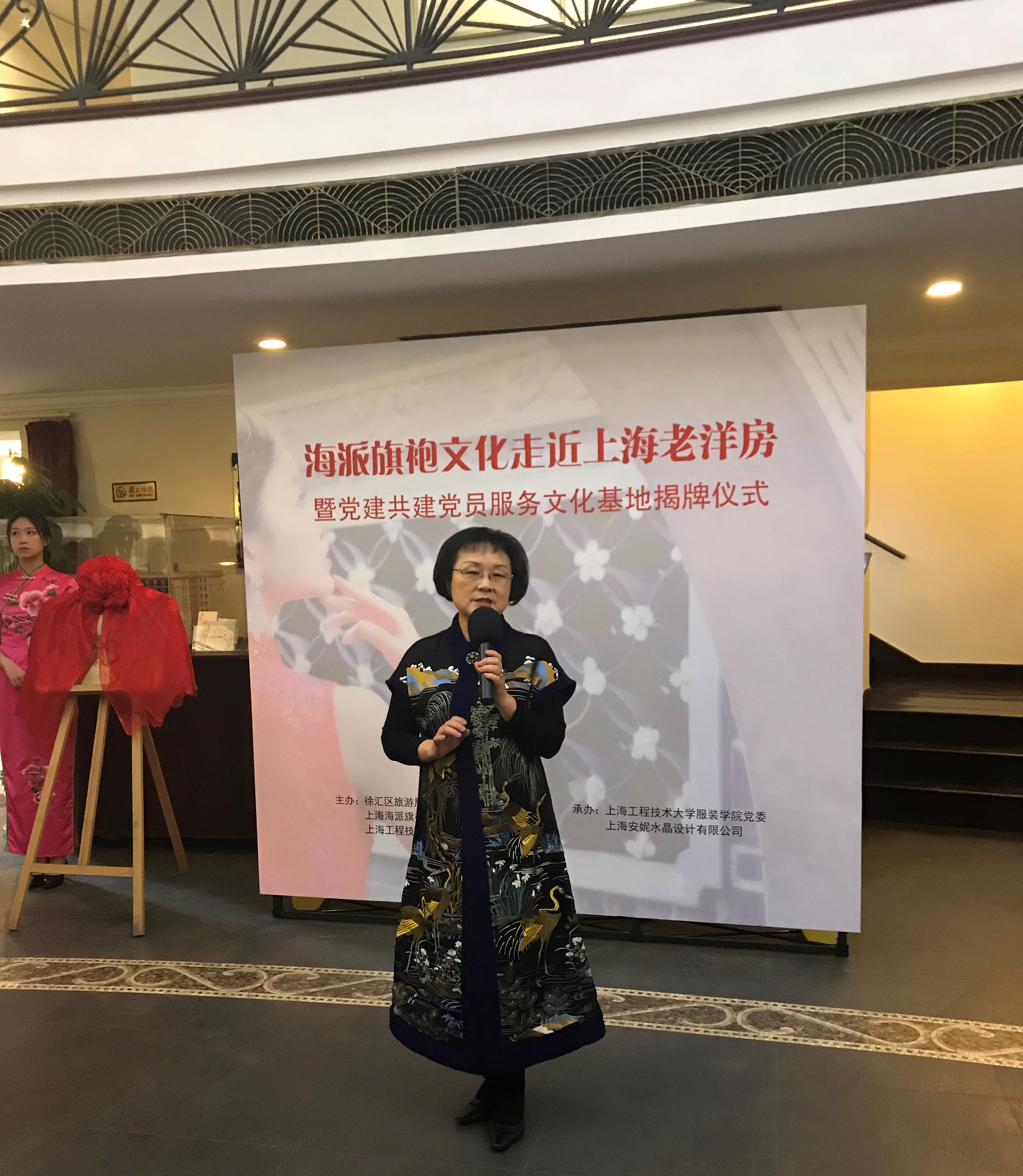 老洋房和旗袍一样,是时代的产物,更是东方韵味与欧洲风情的联袂,它们共同讲述着时代的故事,成为海派文化里重要的篇章。4月16日下午,由9728太阳集团、上海海派旗袍文化促进会专业研究委员会、徐汇区旅游局主办,9728太阳集团服装学院党委承办的海派旗袍文化走近上海老洋房暨党建共建党员服务文化基地揭牌仪式在徐汇老房子艺术中心举行。上海海派旗袍文化促进会创会会长张丽丽、9728太阳集团党委副书记史健勇、徐汇区旅游局局长金伟红,以及协会会员,师生代表出席了活动。
