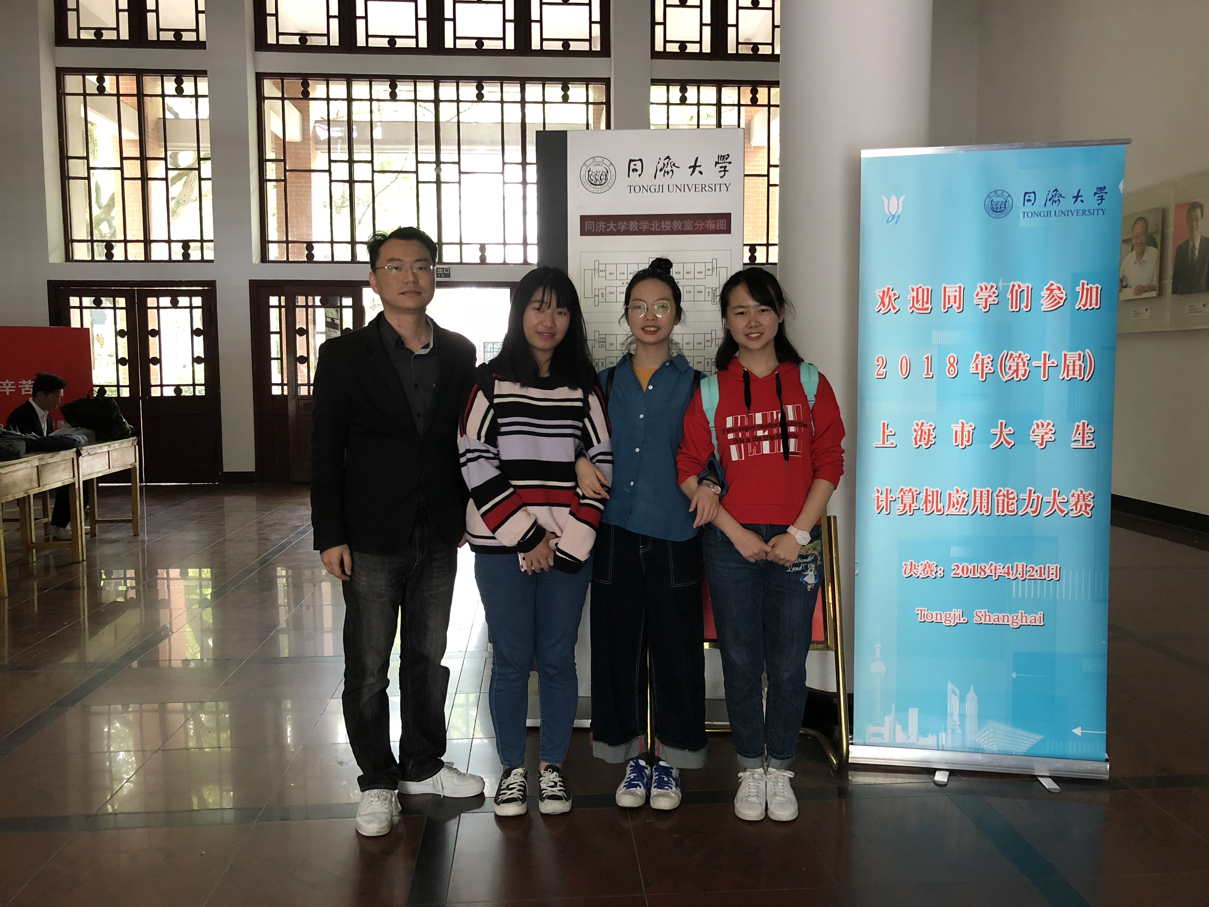 服装学院江心雨、陆羽婷、张浩坤三位同学作品“衣城—童装销售及积分管理系统”成功闯入复赛。421日指导老师尹伟、周诚二位老师陪同参赛学生共赴同济大学参加上海市大学生计算机应用能力大赛复赛,为学生做现场指导。