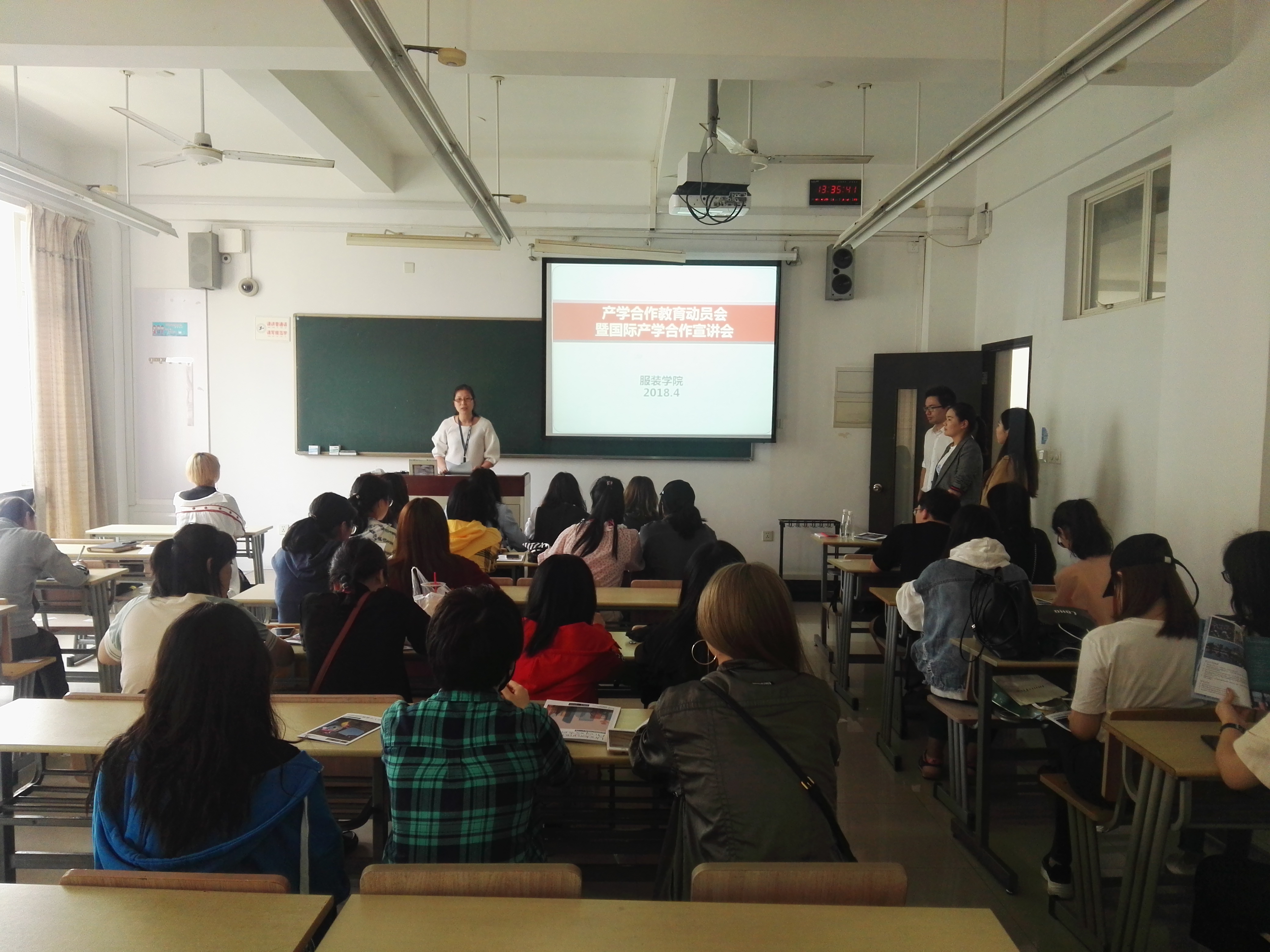 4月27日下午,服装学院在教学楼召开2018产学合作教育动员会暨国际产学合作宣讲会。学院产学合作教育班级学生及对国际产学合作项目有意向的学生参加会议。会议由学院产学合作教育负责老师沈智莉主持。