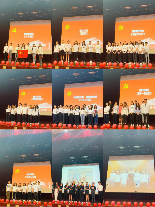 红歌会决赛在第一首歌曲《我和我的祖国》中拉开帷幕,紧接着《强军战歌》、《军港之夜》、《大中国》、《我爱你中国》、《歌唱祖国》、《七子之歌》等一首首红色经典曲目,一曲曲磅礴铿锵的旋律,唱出了青年学子心中激昂的爱国情怀。一个多小时的激烈比赛高潮迭起,精彩纷呈。最后,大赛评委组评选出一、二、三等奖并进行了颁奖。