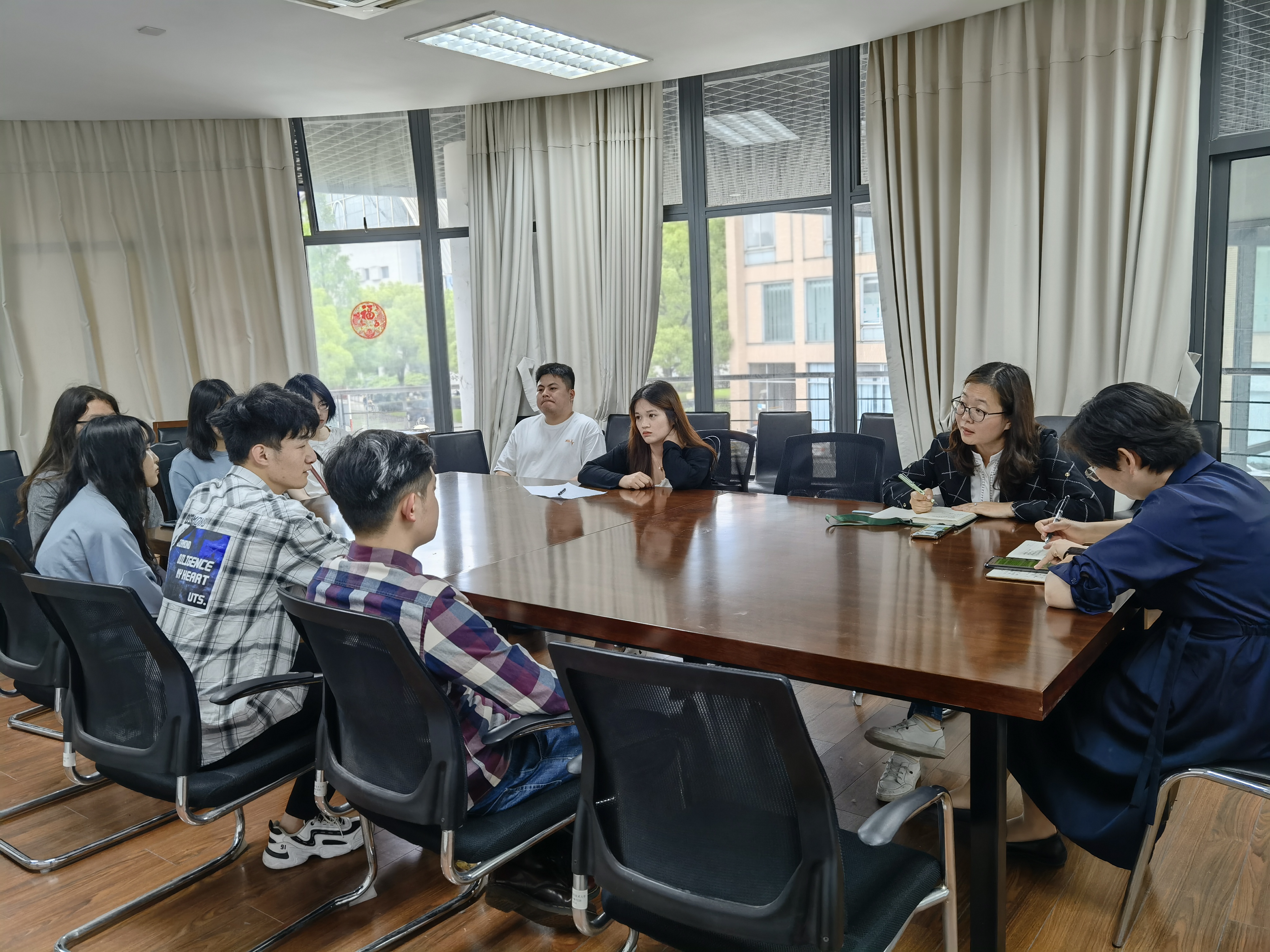 座谈会上,学院党委副书记谢志霞老师一一了解参会学生的就业状态和遇到的困难,针对学生在求职过程中遇到的问题和思想困惑给予“一对一”的就业指导。在纺织服装行业就业形势依旧严峻的情况下,她希望毕业生们能够认清目前就业形势,降低岗位期望值,拓宽就业方向选择,实现“宽口径”就业。她建议毕业生们要抓住学院内推的就业岗位机会,积极投递简历,实现“先就业再择业”,找到适合自己的就业岗位。
