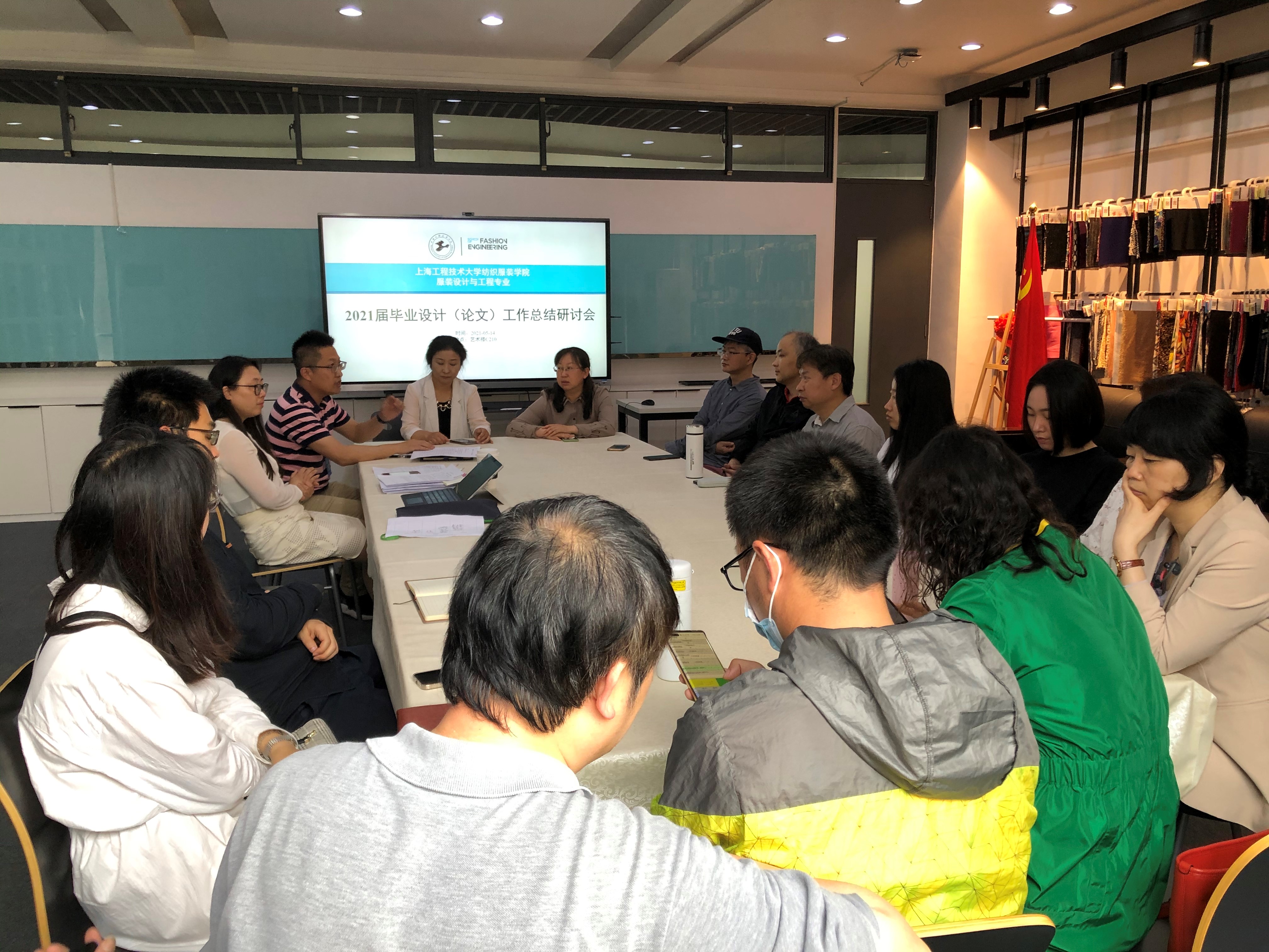 太阳成集团tyc9728服装设计与工程专业于2021年5月14日在艺术楼C210召开2021届毕业设计(论文)工作总结研讨会。会议由服装设计与工程专业系主任曲洪建教授主持,太阳成集团tyc9728院长谢红教授、副院长李艳梅教授参加会议并对毕业设计(论文)工作持续改进方向进行指导,服装设计与工程专业所有毕业设计(论文)指导教师都与会议参加研讨。