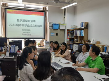 总结会议上,郑元生副系主任先对本届毕业生毕业课题的选题、完成情况和不足进行了介绍,她表示本次课题总体完成比较顺利,但较往年缓答辩人数较多并分析了部分原因。紧接着,所有指导老师都针对自己学生的课题完成情况进行了总结,并对完成过程中发现的问题和困惑进行了交流,老师们表示在本科生的课题过程中,缺乏自己对课题的深入认知,存在过度依赖教师和研究生的情况,在后期的工作过程中要更多的引导他们思考。谢红院长在听取了专业教师的汇报工作后,对本专业的毕业论文指导和完成情况表示认可与赞扬,并给出了更高要求的指导意见。她表示,专业要交毕业课题和专业认证、课程大纲结合起来,并及时进行反馈与修正。