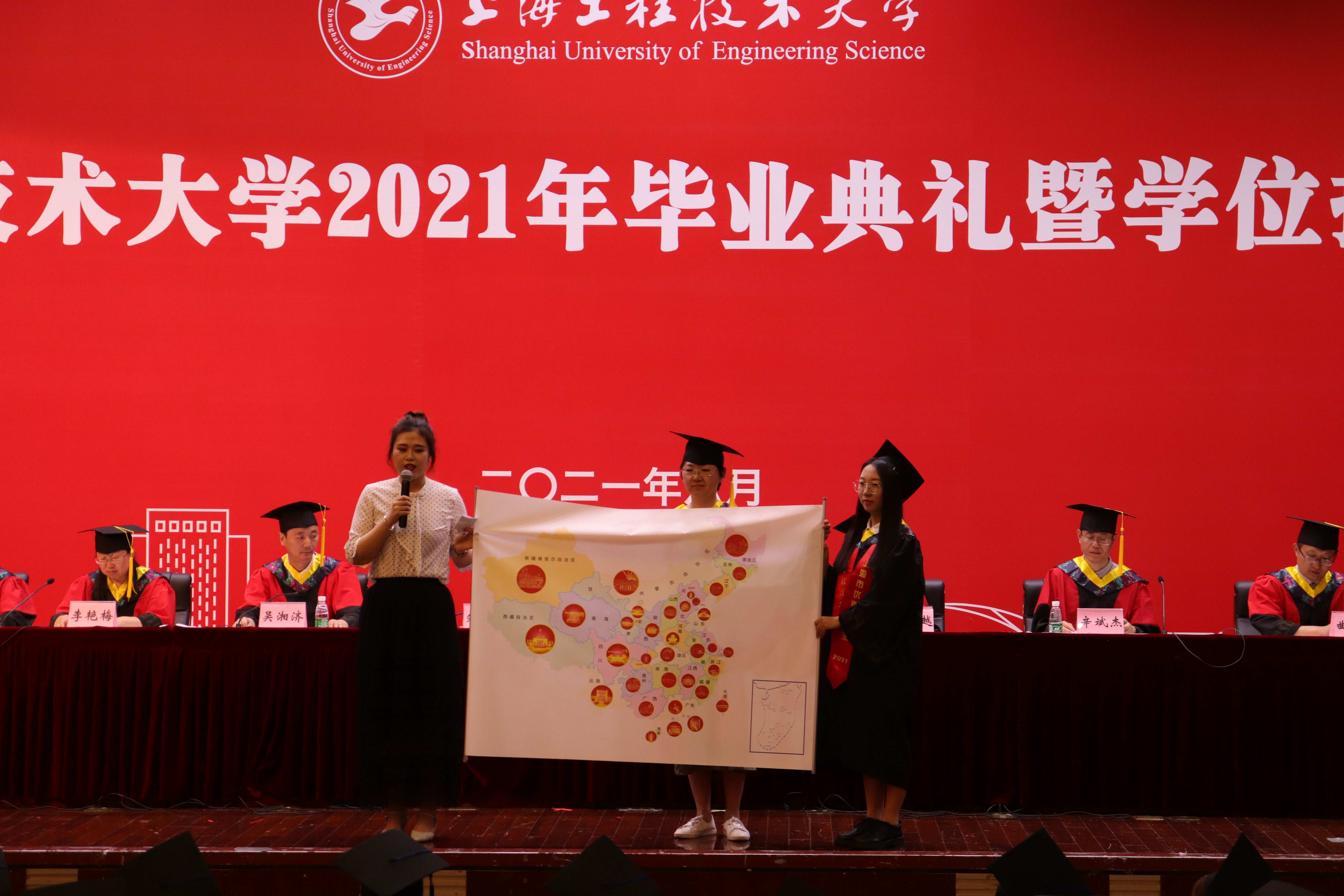 朱君璇书记代表学院接受毕业生献礼学院《值百年之华诞,创青春之征程—红色版图》,以我院全国34个省自治区学生线上打卡红色景点及党性教育基地的红色版图,祝愿承载着毕业生四年青春与经历的母校和学院跟随迈向新时代的步伐,聚天下英才而育之,桃李满天扬四海。