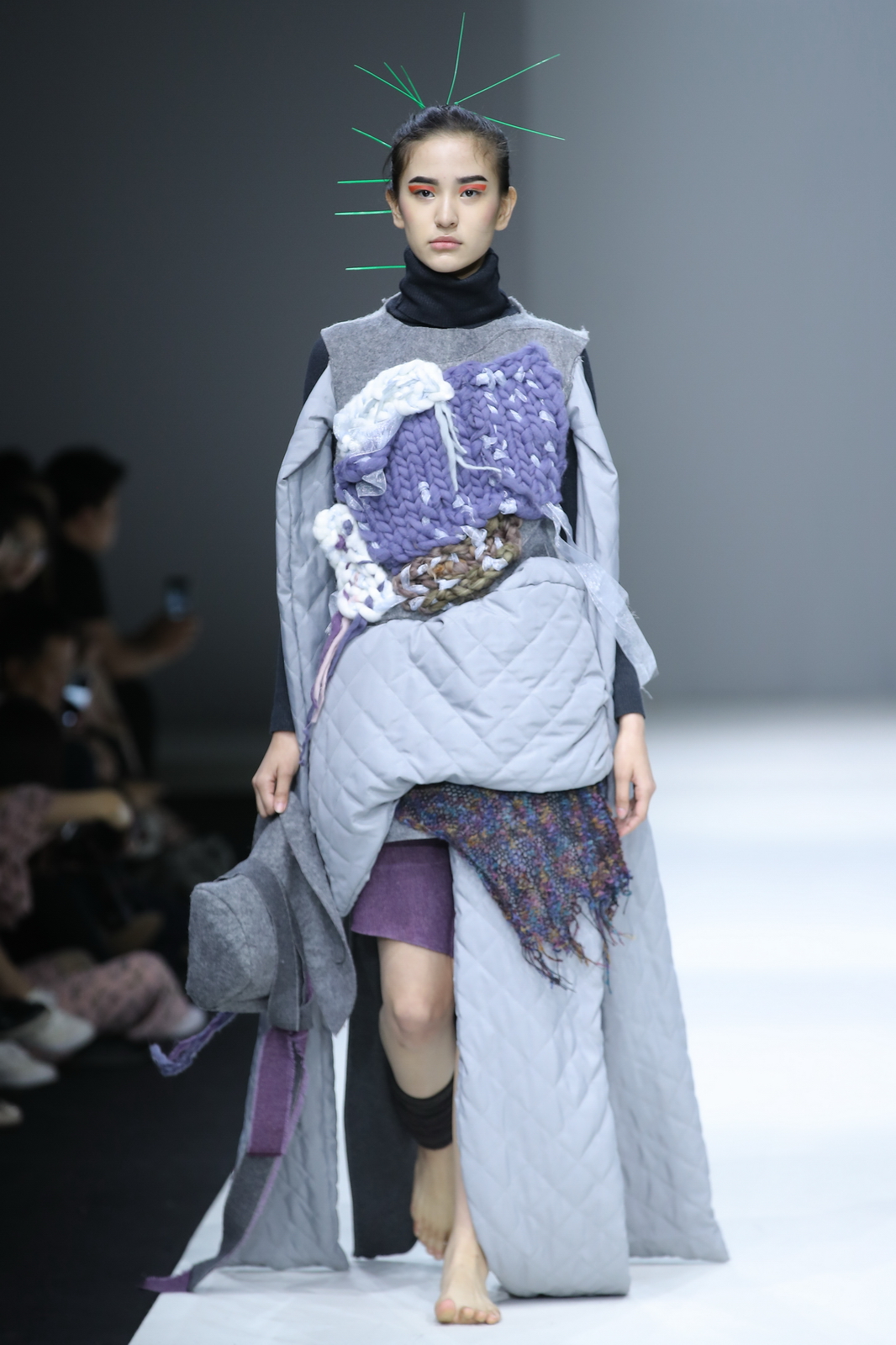 本次毕业设计作品展演也是一次校企合作下的教学成果汇报。紫晶花是苏州吴江盛伟紫荆花纺织有限公司的面料品牌,学生们在与企业的项目合作中受到启发,获得了宝贵的实战经验。另一方面,企业也对学生们将面料转化为富有创意和新意的时装作品感到满意,是一次卓有成效的教学改革尝试。