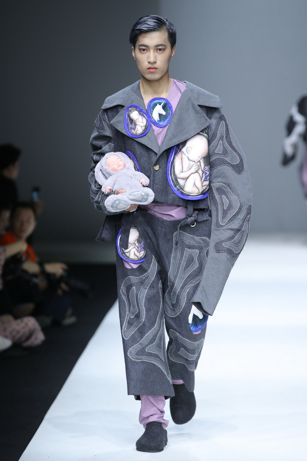 这场以“之间”为主题的毕业设计作品发布会,意指在未来与过去、科学与艺术、人类与机器之间交错双生。学生的创意以科学幻想为起点,从矛盾体、空间折叠和幻像三个设计方向进行创意,营造出一个未来感十足的前卫氛围。