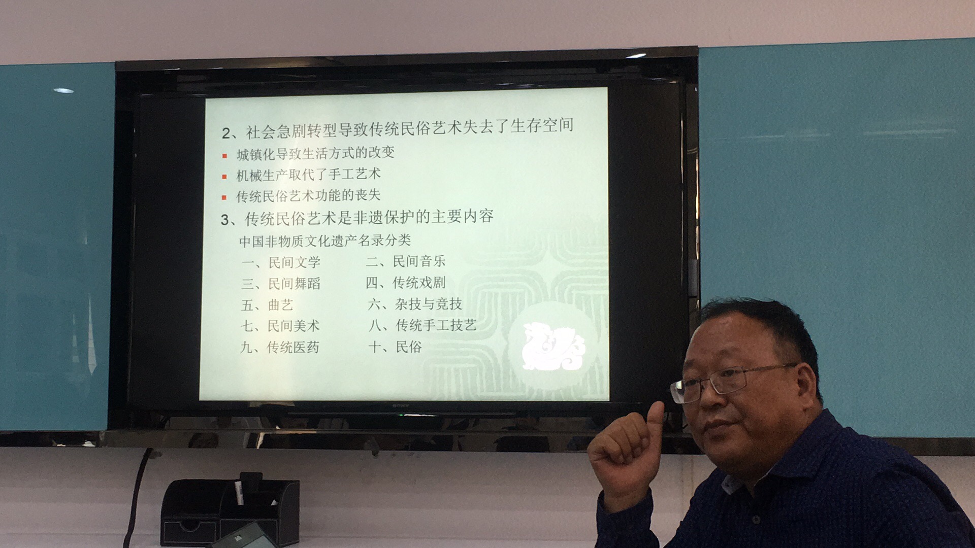 沙龙活动围绕着“民族、 民俗艺术”分四个主题开展:首先对民俗艺术沙龙介绍,然后复旦大学郑土有教授《传统民俗艺术现代转换的可能性和路径》的讲座,接着服装学院胡越副院长对传统民俗如何进行现代创意设计应用的发言,最后对民族、民俗艺术展开讨论。复旦大学郑土有教授在讲座中,对民族、民俗艺术的当前形势做了系统分析,并以研究者的角度对民族、民俗艺术的转型可能性和途径发表了自己的看法;胡越副院长对艺术类科研项目的研究方向和建立服装学院特色专业方向进行了建议和梳理,并民族、民俗艺术的学术研究做了发散性的思考,最后对民族民俗艺术实现现代创意设计及社会服务功能进行探讨,并将民族、民俗艺术方向的学术研究列入了日程。