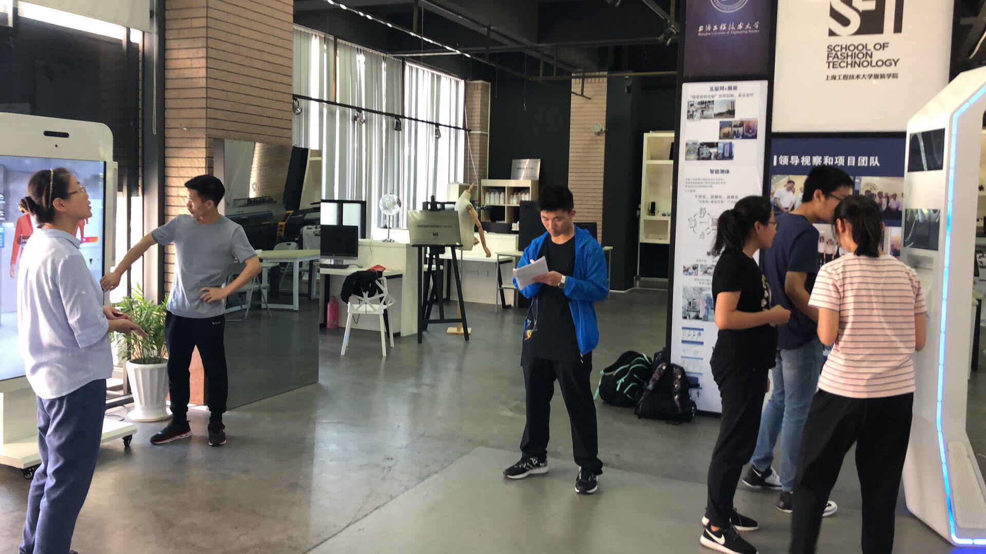 海派旗袍对现代服装的创意启示项目和服装智能定制项目在艺术楼C210进行了授课,授课教师为袁蓉老师和徐律老师;新型阻燃机器人防护面料的开发与研究项目,在许颖琦老师带领下,如火如荼的开展实验实践,此外还有研究生小导师们和部分学生家长到场。
