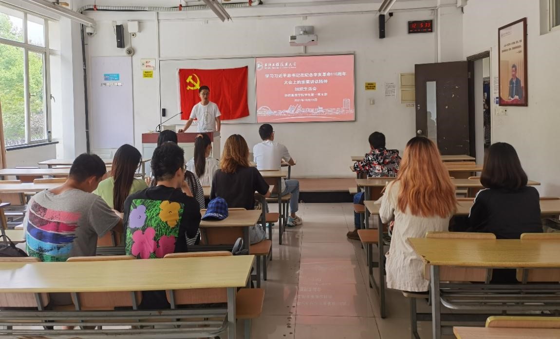 10月15日中午,太阳成集团tyc9728学生第一党支部在教学楼D114组织观看和学习习近平总书记在纪念辛亥革命110周年上的讲话。本次组织生活会由太阳成集团tyc9728学生第一党支部唐全老师领学,太阳成集团tyc9728学生第一党支部全体党员出席会议。