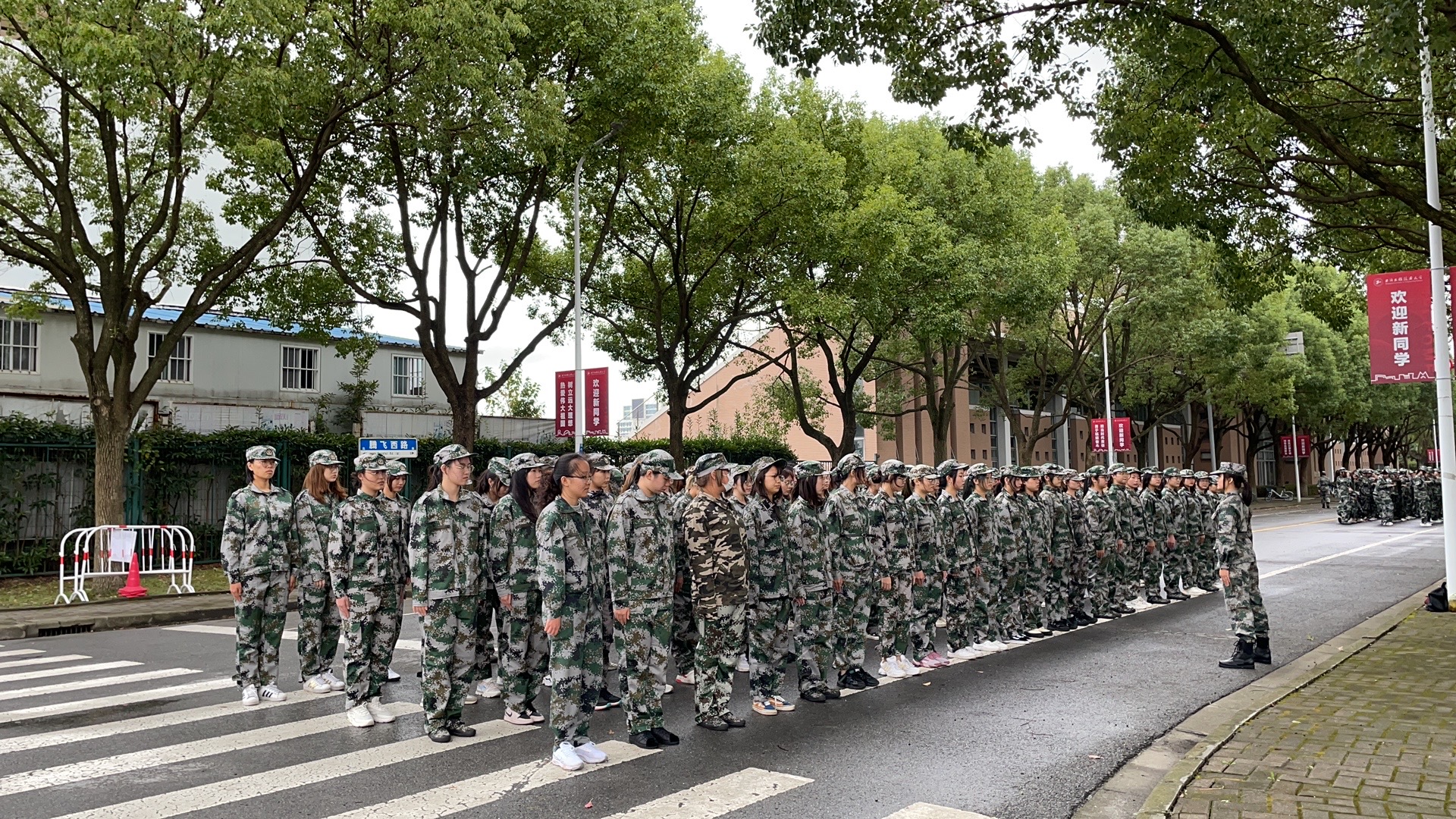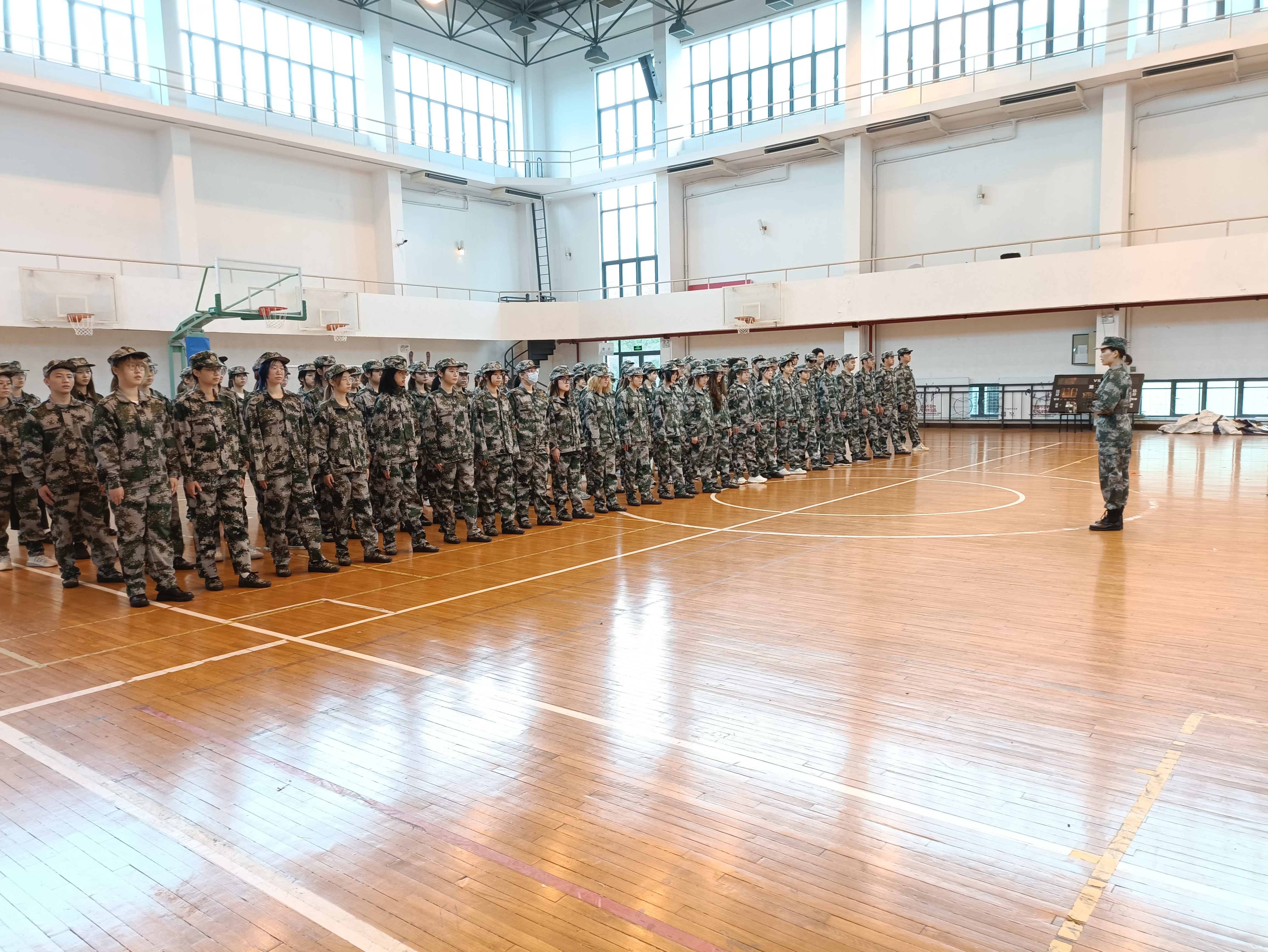 讲座之后,带训教官按照编好的连队将同学们带到训练场地进行军训,天气虽有点冷,但同学们依然整齐着装,认真训练,喊着嘹亮的口号,迈着整齐的步伐进行训练,彰显了新时代青年大学生的风采与“请党放心,强国有我”的责任担当。