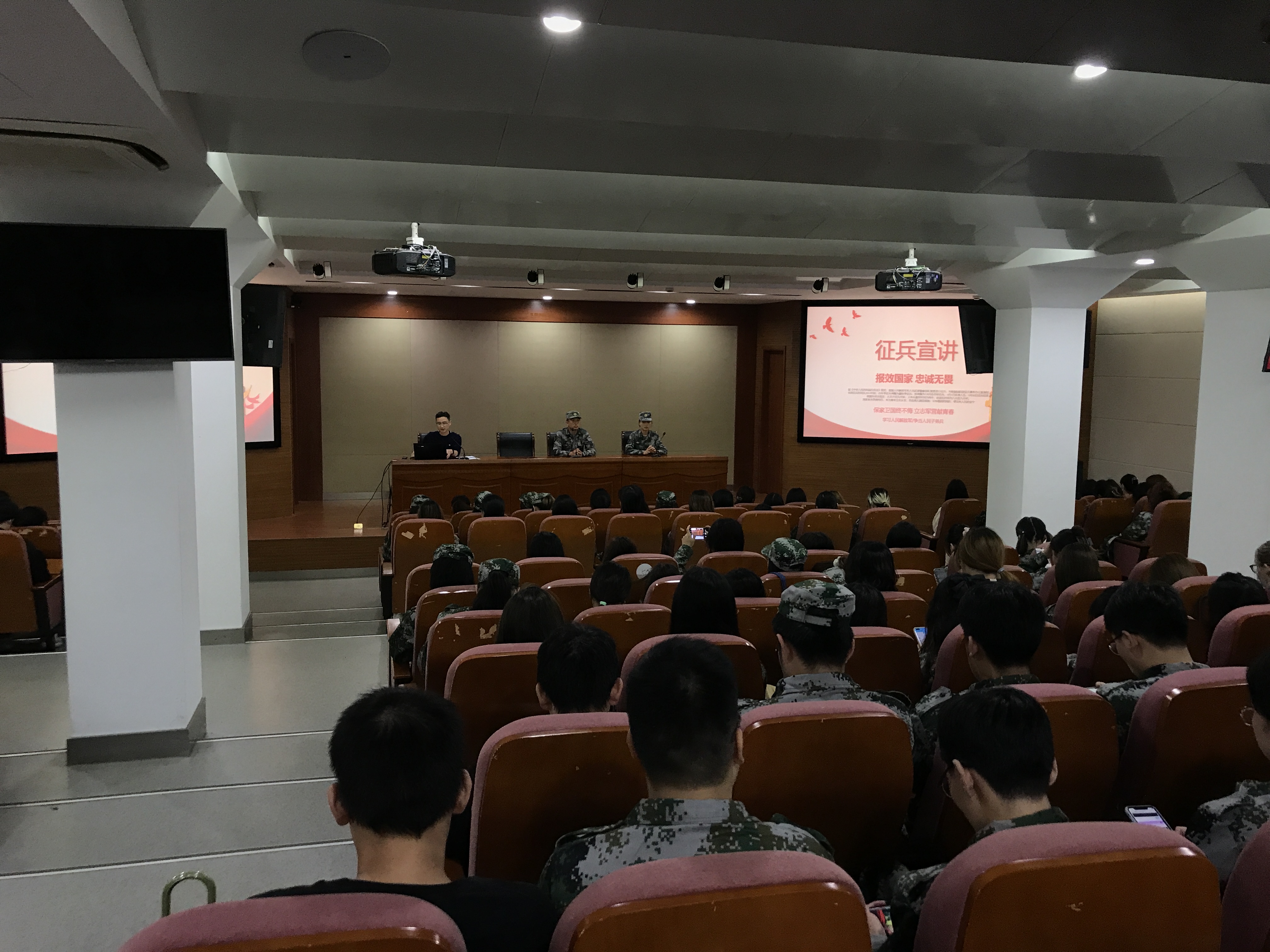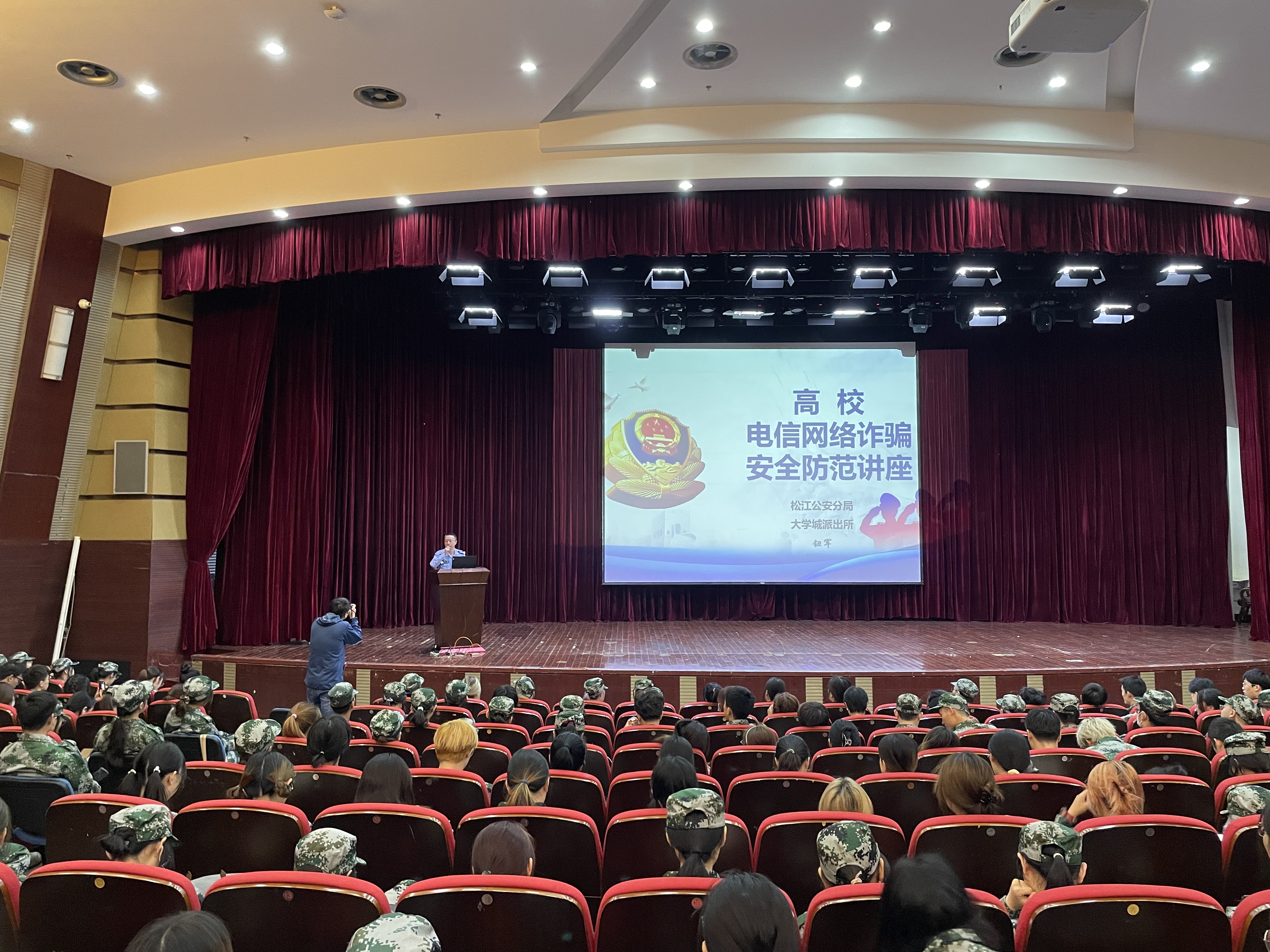 下午学院共开展了安全教育和征兵宣讲两场讲座。学院特邀大学城派出所钮军警官做安全教育专题讲座,钮警官从在大学生中经常遇到的诈骗案例讲起,告知同学们哪些是常见诈骗电话、短信、微信,以及防诈骗的注意事项,最后提醒同学们要提高警惕,学会保护自己,并且要遵守法律法规。通过钮警官的讲解,同学们的防范意识明显提高,并及时下载了国家反诈中心APP。第二场讲座由带训辅导员唐全和李永贺老师宣讲,他们以2021年上海市征兵工艺宣传视频为开头,从国防的意义、入伍征集条件要求、应征入伍优待政策、入伍征集流程四个方面做了征兵动员,震撼的宣传视频及学生中的优秀服兵役案例燃起了同学们当兵入伍的熊熊之火。
