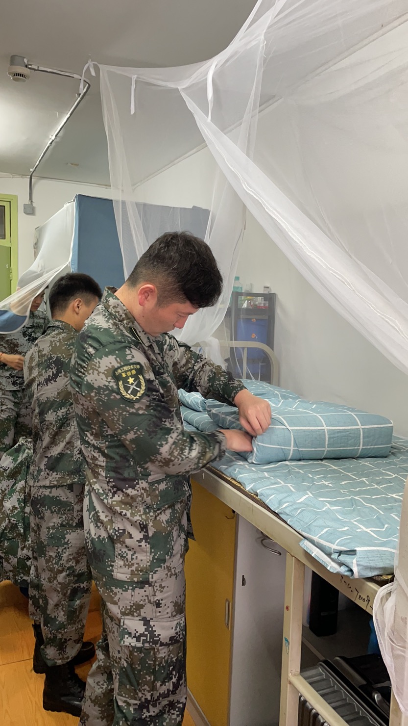 上午由于天气原因,学院组织参训学生整理宿舍内务,带训辅导员和军训教官分成四个小组,分别在三期12、25、26号楼和四期41号楼指导学生整理内务,经过同学们的认真整理,宿舍内务整洁有序。