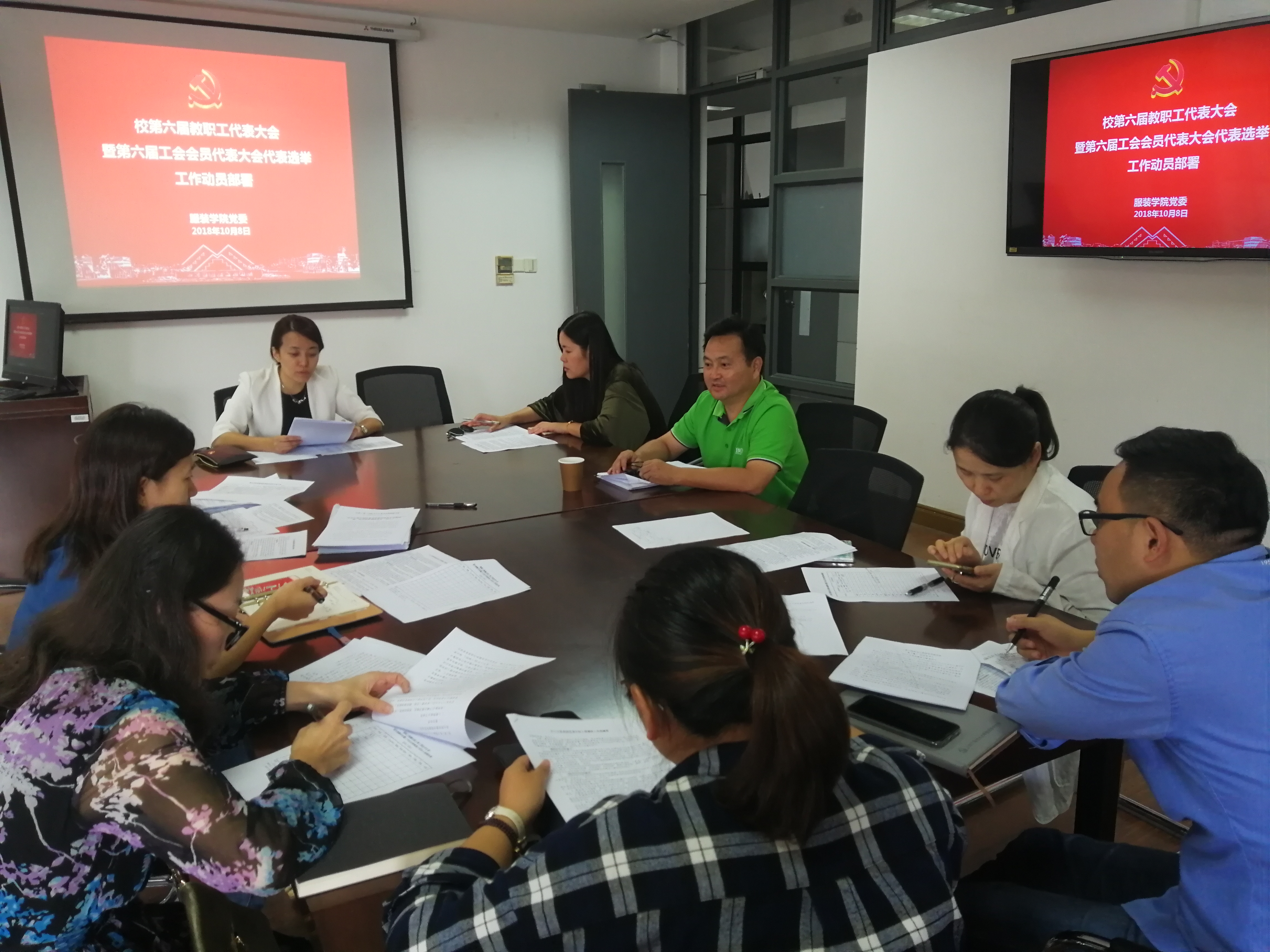 10月8日下午校工会常务副主席柳如荣就教代会暨工代会换届工作事宜对服装学院进行了走访和沟通,院党委书记袁蓉老师,院工会主席王黎明老师参与了会谈。会上柳如荣主席强调教代会是高校管理体制的重要组成部分,是教职工行使民主权利、参与民主管理和民主监督的基本制度和基本形式,也是校务公开的基本载体,学院要在院党委的领导下,以高度负责的精神、严谨细致的作风,确保圆满完成各项换届工作任务。