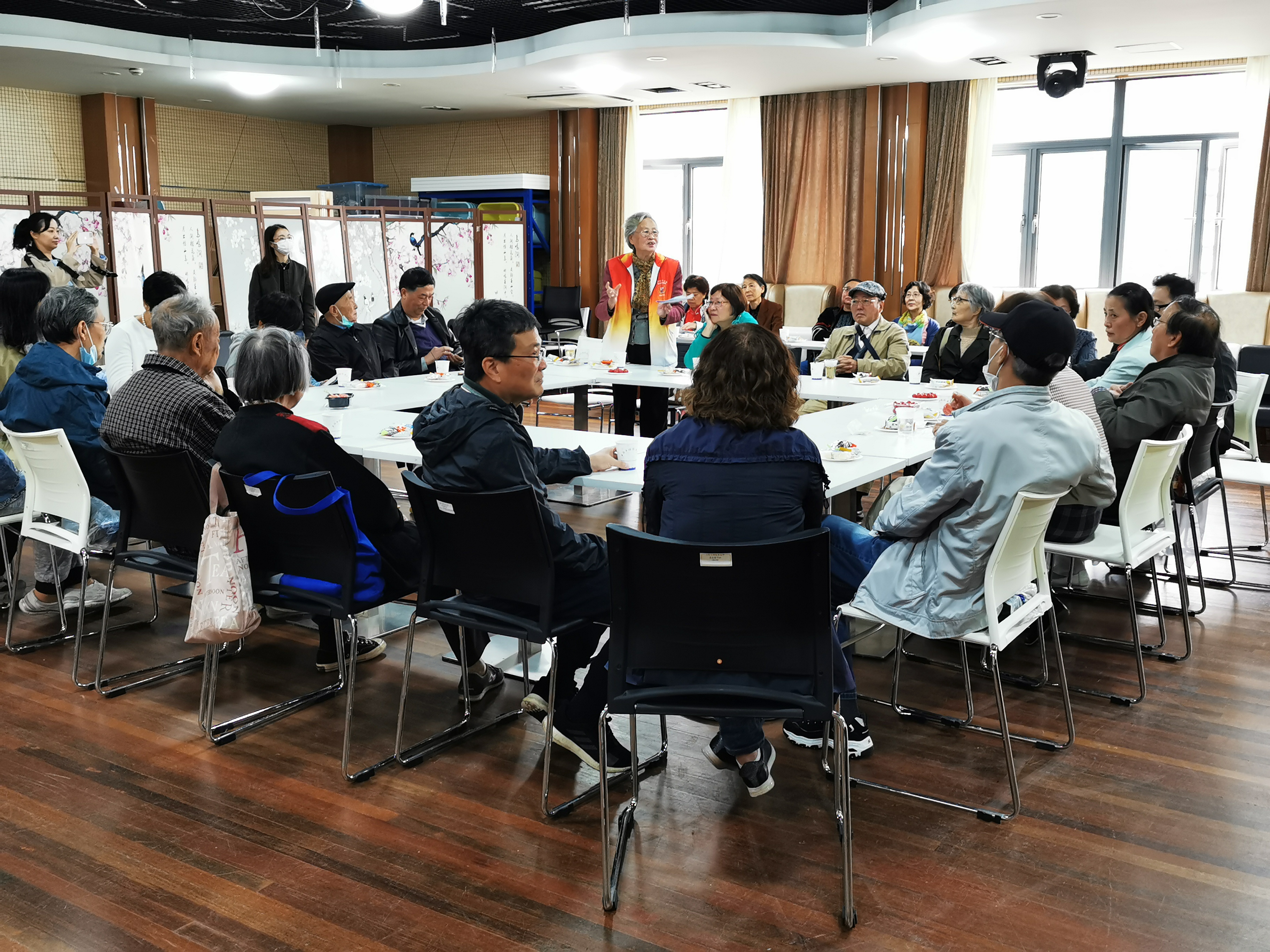 与会老同志们也进行了交流发言,围绕建党100周年的党史学习、志愿服务、育人使命、工会活动、生活现状等进行交流,并现场表演了一段太极拳,博得满堂彩。