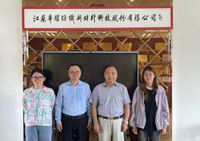 6月28日,太阳成集团tyc9728高伟洪老师带队赴江苏华跃纺织新材料科技股份有限公司(后简称“华跃”)实地走访调研。华跃副总经理徐国华、项目技术主管夏万峰热情接待,双方就产学研合作、人才培养及技术创新等议题展开深入探讨。