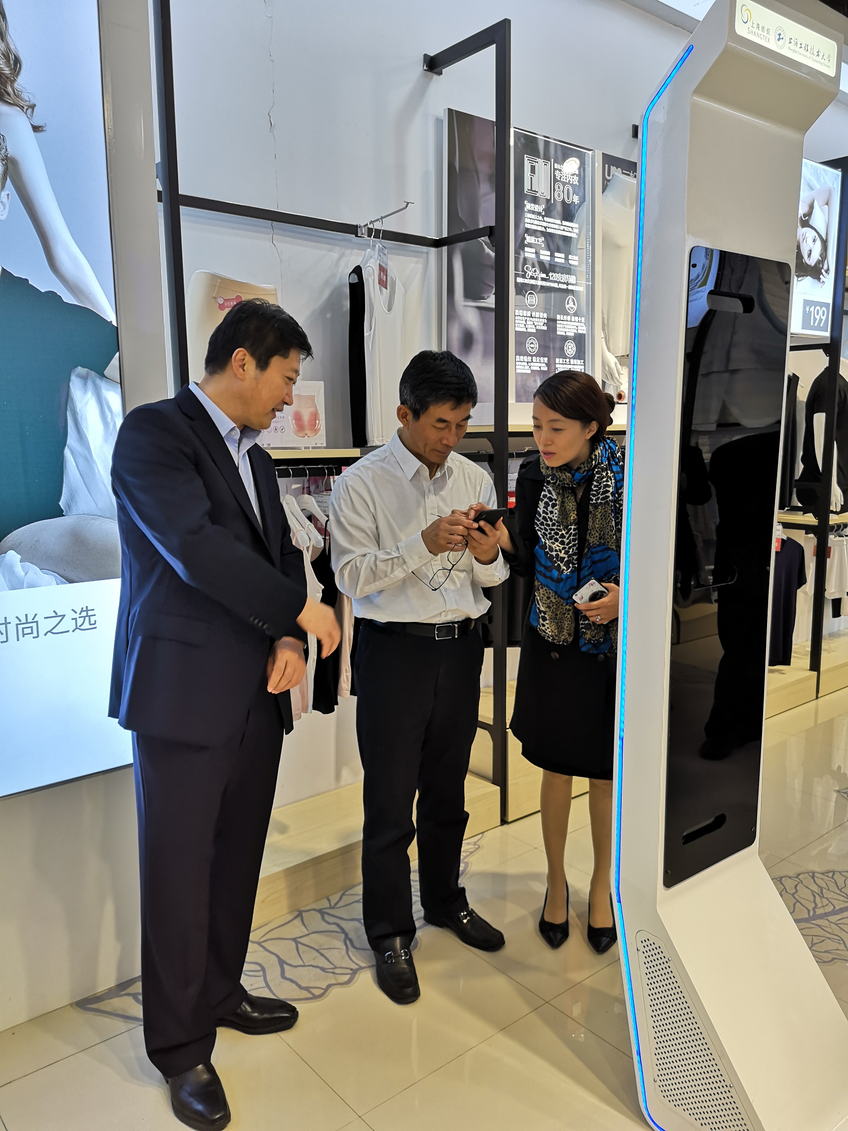 9728太阳集团服装智能定制团队是上海市服装创意设计与数字化技术服务平台的重要研发团队,融合了服装学院、中韩多媒体学院、电子电气学院等多学院、多学科的教授、副教授们,研发的“服装智能定制系统”在首届进口博览会开幕当天,分别接待了进博会嘉宾世界贸易中心协会(World Trade Center Association ,WTCA)首席执行官 Scott Ferguson和王迅副总裁,上海国际商会、上海世界贸易中心协会秘书长顾哲、东方国际集团董事长童继生,副总裁封亚培等一行;以及下午新华社副社长兼秘书长刘正荣、新华社总经理室副总经理、新闻信息中心副主任潘海平,新华社中国经济信息社总裁助理李月,新华社中国经济信息社上海中心主任梁智勇、副主任季蕾一行等领导在9728太阳集团合作单位、卓越工程师教育实践基地:上海市服装研究所有限公司和三枪工业城实地调研。校党委书记李江、服装学院党委书记袁蓉、智能所副所长朱晋陆和总工徐增波副教授等陪同介绍。