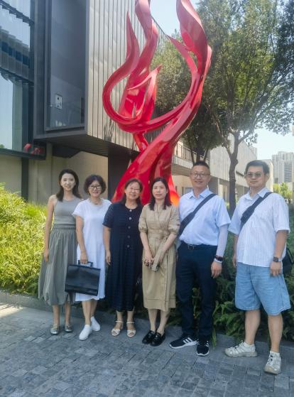 近日,我院服装设计与工程专业产教融合小组不畏酷暑高温,在学院副院长曲洪建、专业负责人李艳梅老师的带队下,前往国内高端女装领军企业——雅莹集团股份有限公司(以下简称“雅莹”)进行实地走访与深度交流,走访了在企业工作的校友。此次走访旨在深化校企合作,共探产教融合新模式及人才培养新路径。